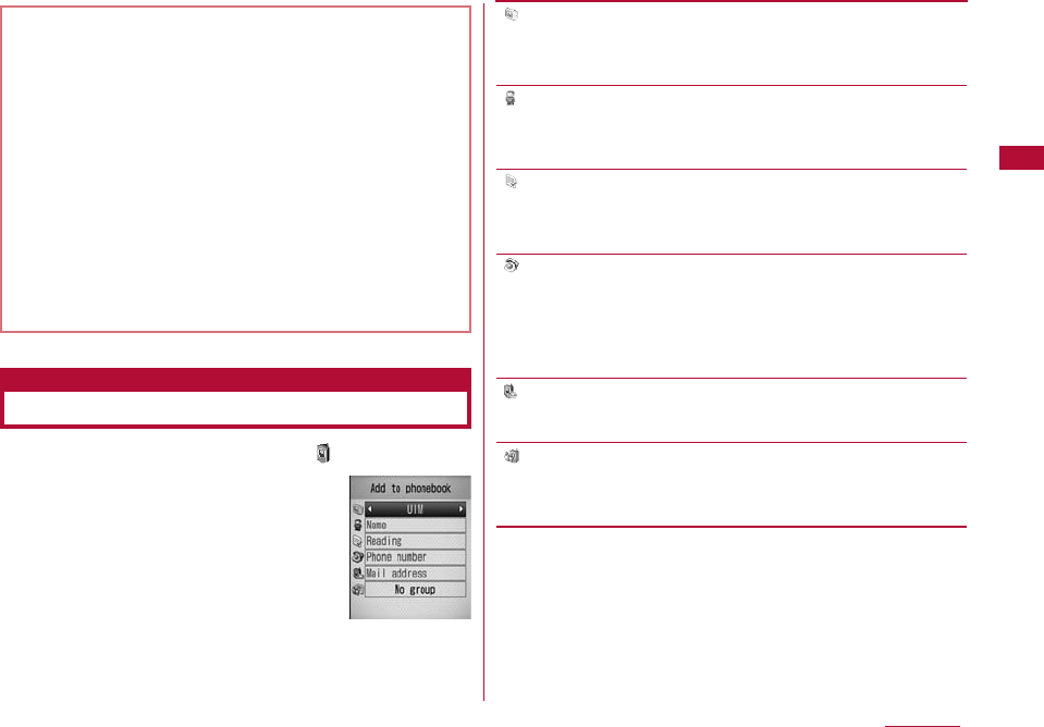 ・ Phonebook entries will be saved to the Phonebook in the FOMA