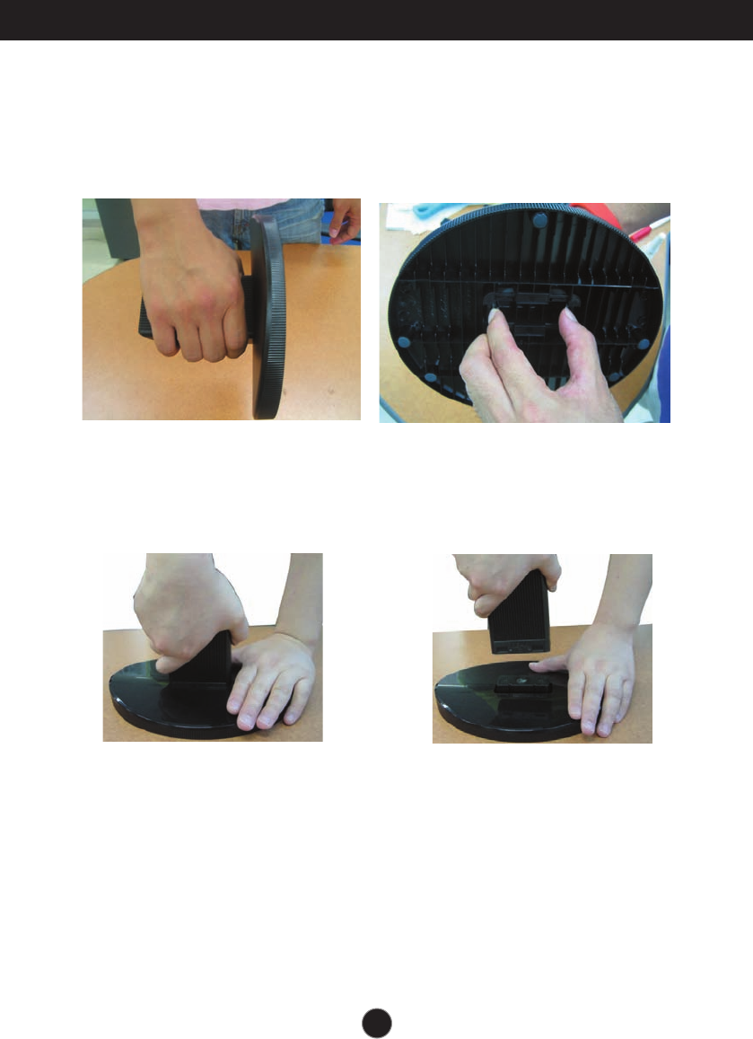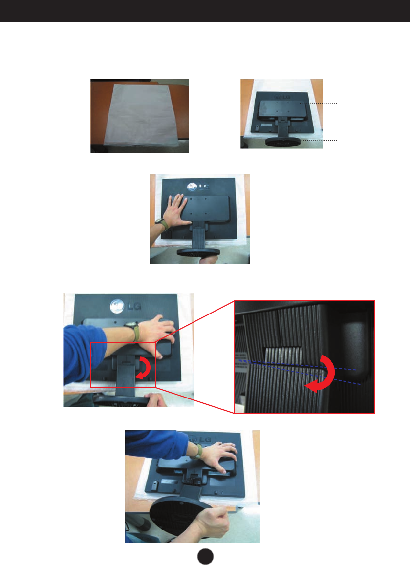 1. Put a cushion or soft cloth on a flat surface. 2. Place the monitor face down on
