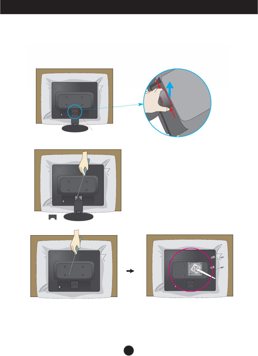 1.Place the monitor with its front facing downward on a soft cloth or a cushion.