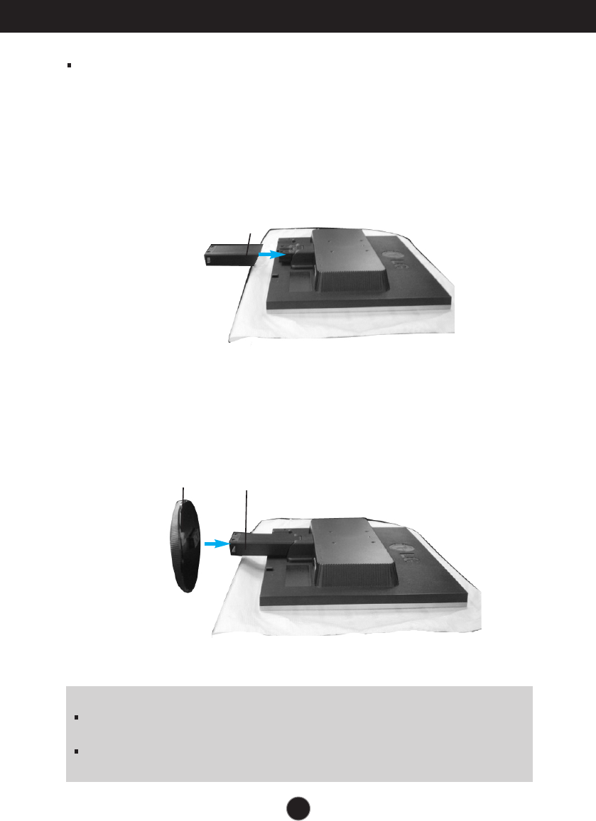 1. Put a cushion or soft cloth on a flat surface. 2. Place the monitor face down on