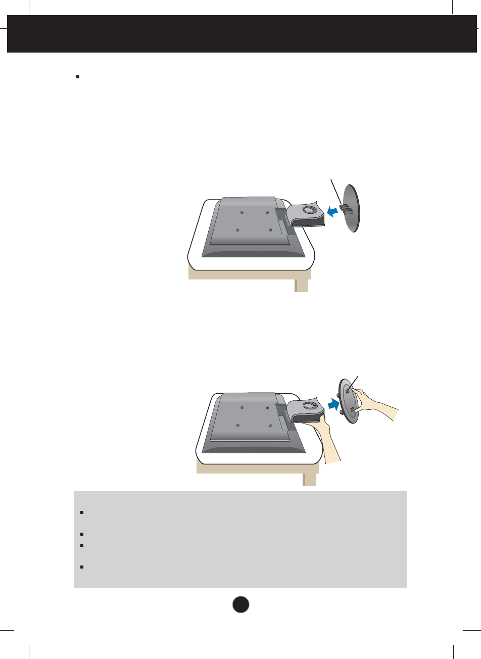 2. Align the hooks on the stand base with the matching slots in the base of