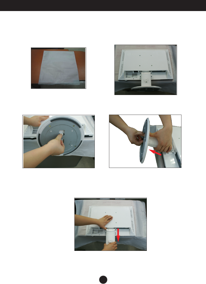 1.Place the monitor with its front facing downward on a soft cloth.
