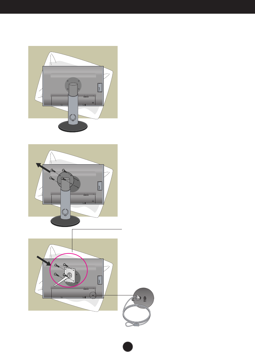 1. Place the monitor with its front facing downward on a cushion or soft cloth.