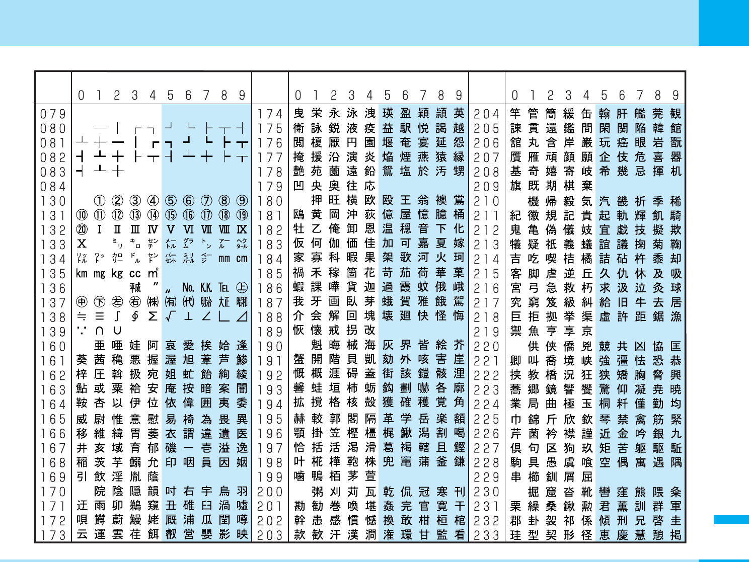 • Some characters in Kuten Code List may appear different from those on the display.