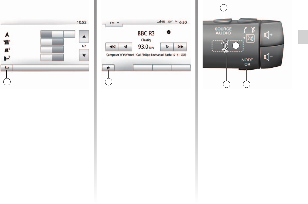 – Operate the controls (on the dash or near the steering wheel) and read the information on the screen only when road