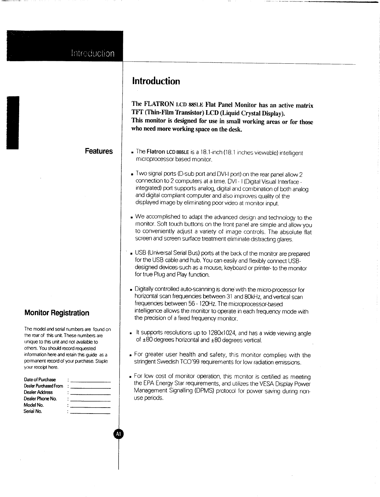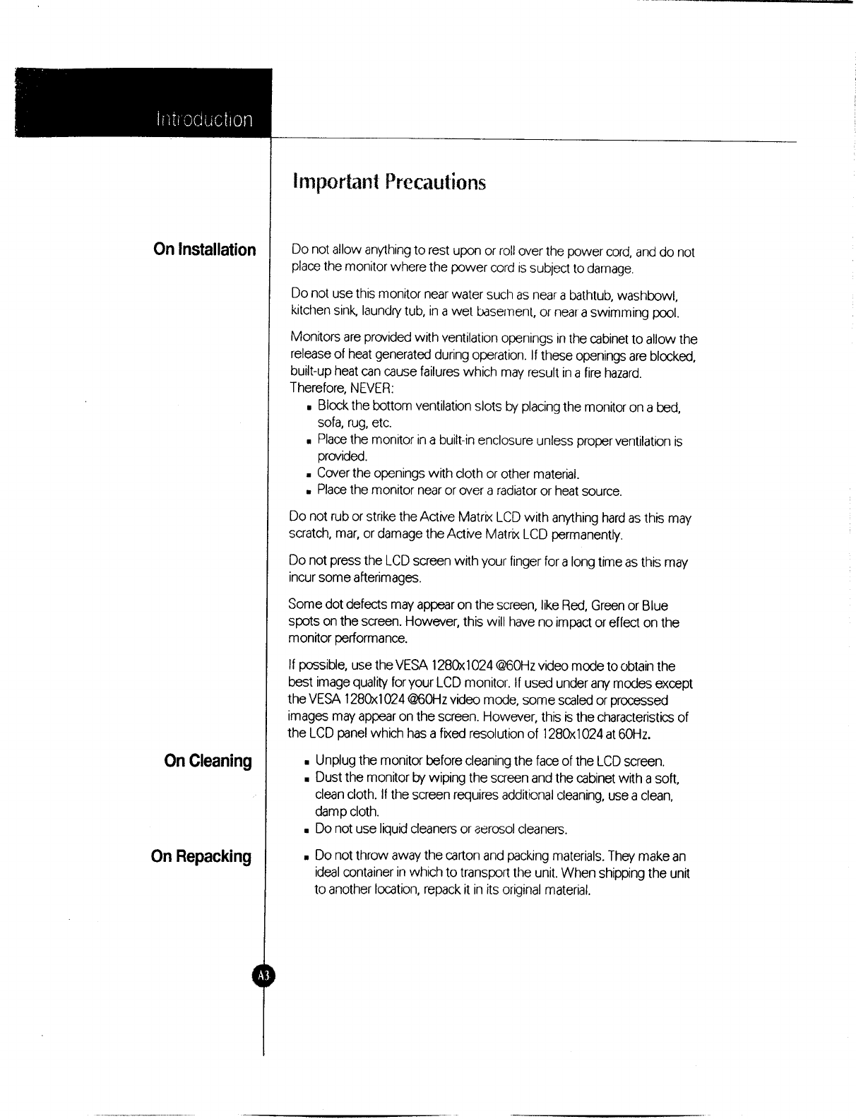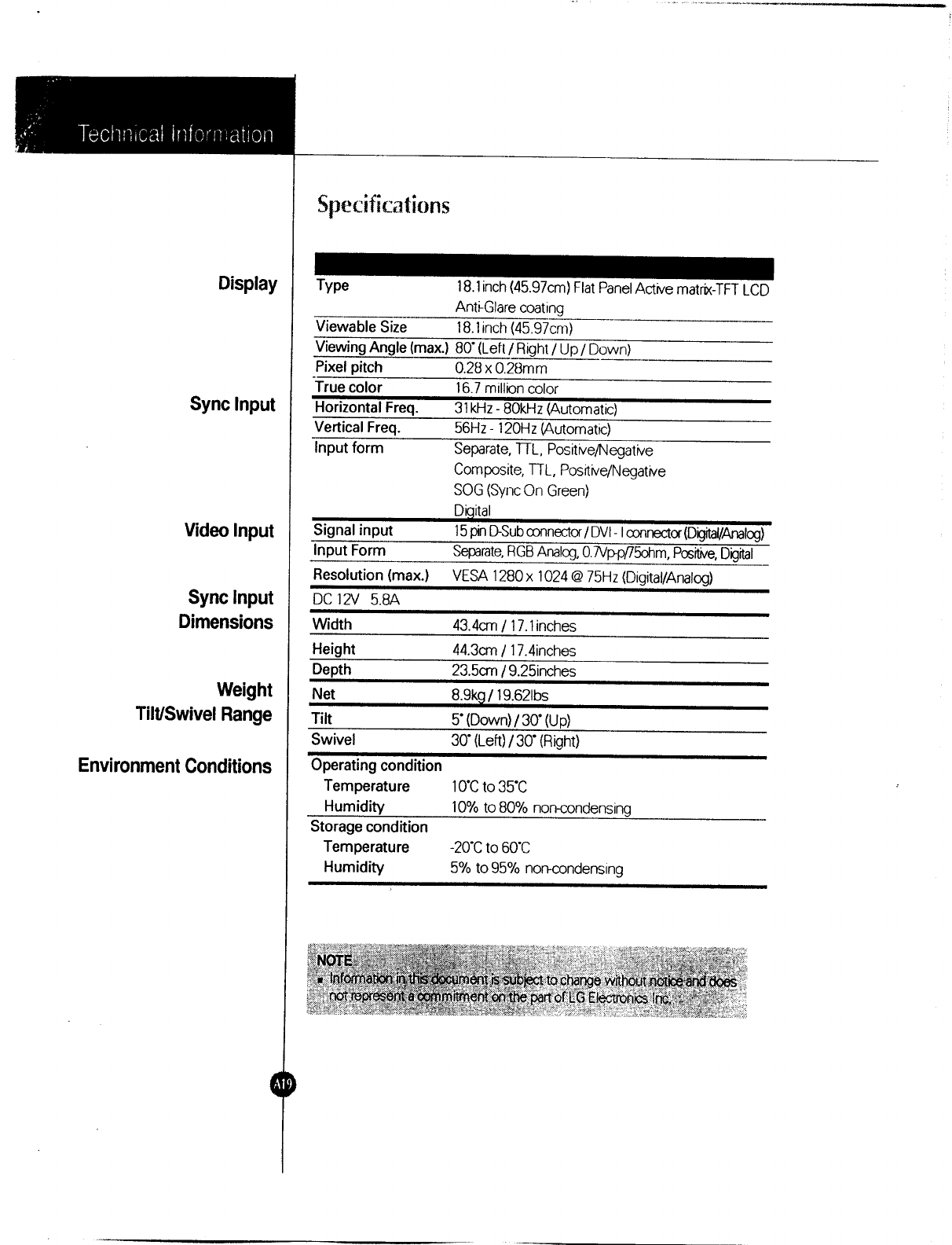 LG Electronics USA 18" TFT LCD Color Monitor Users Manual