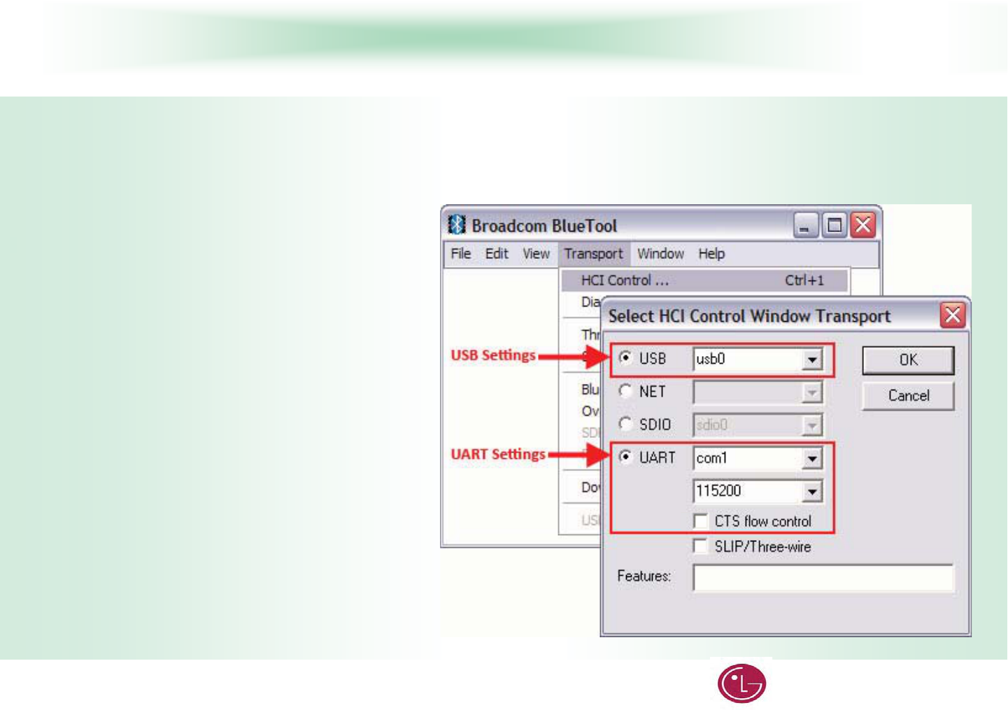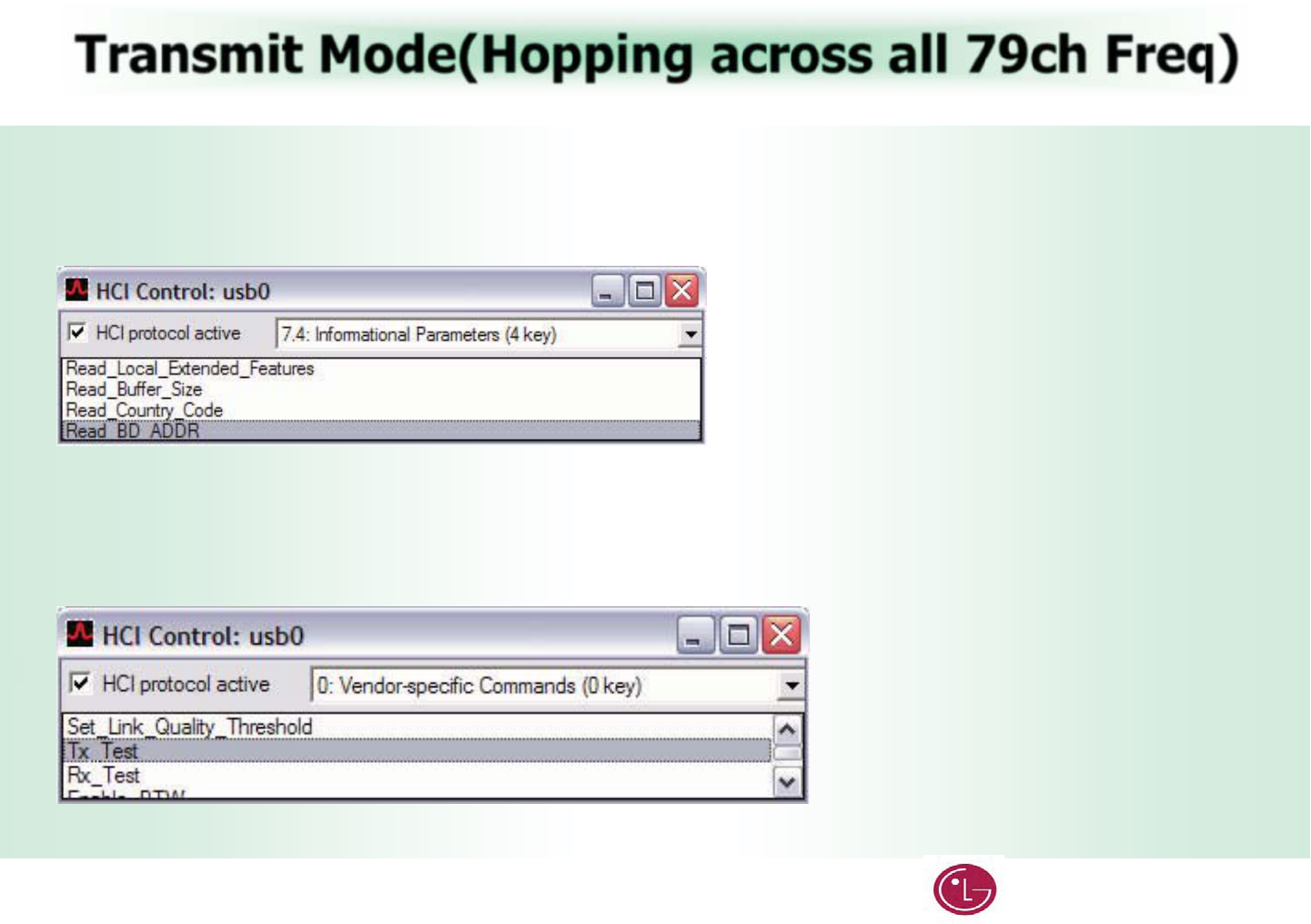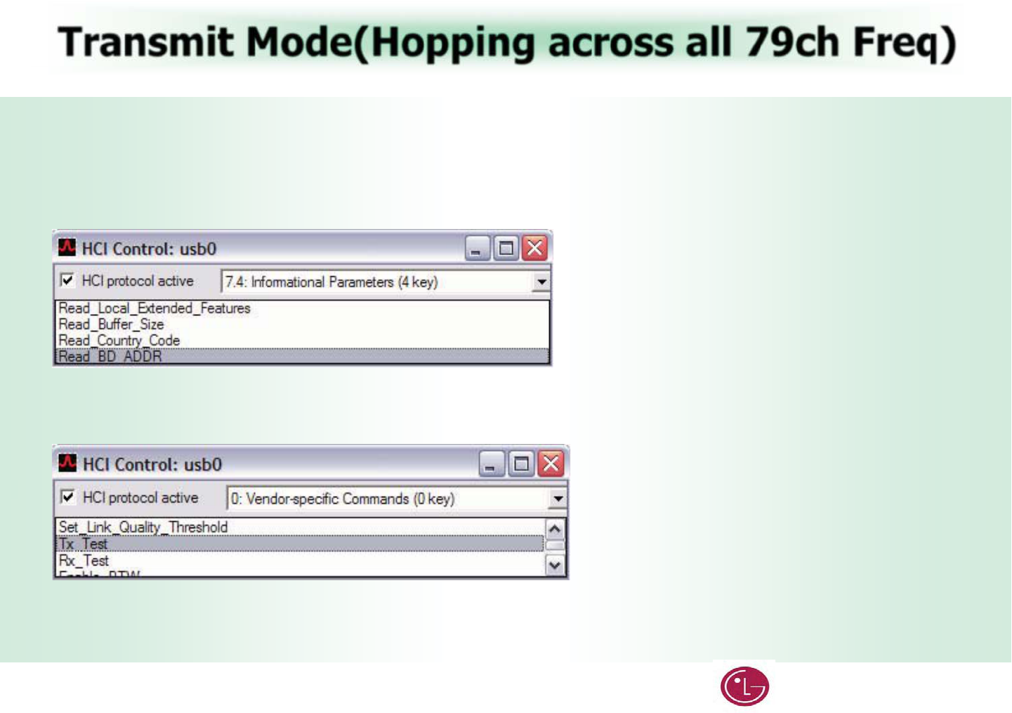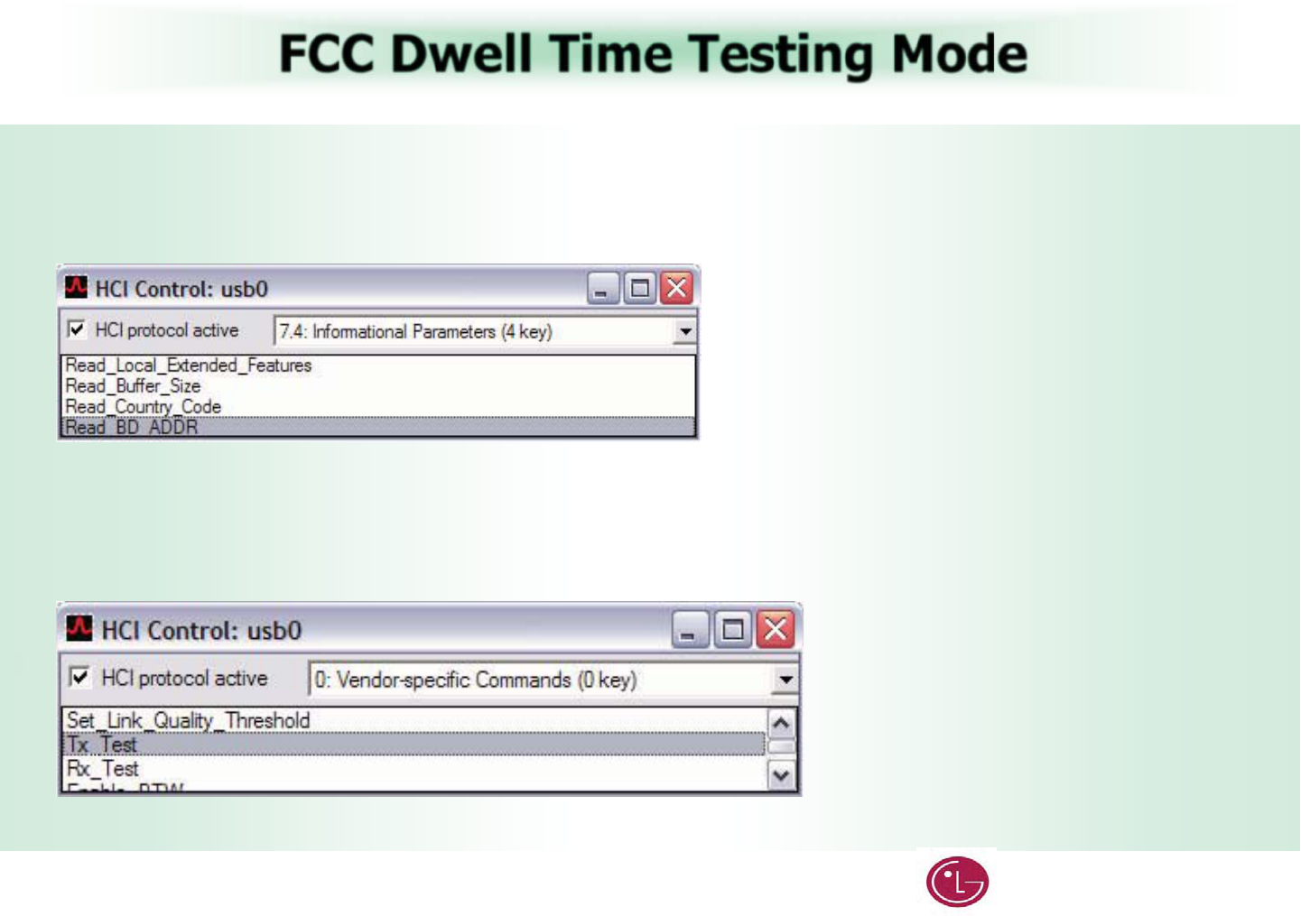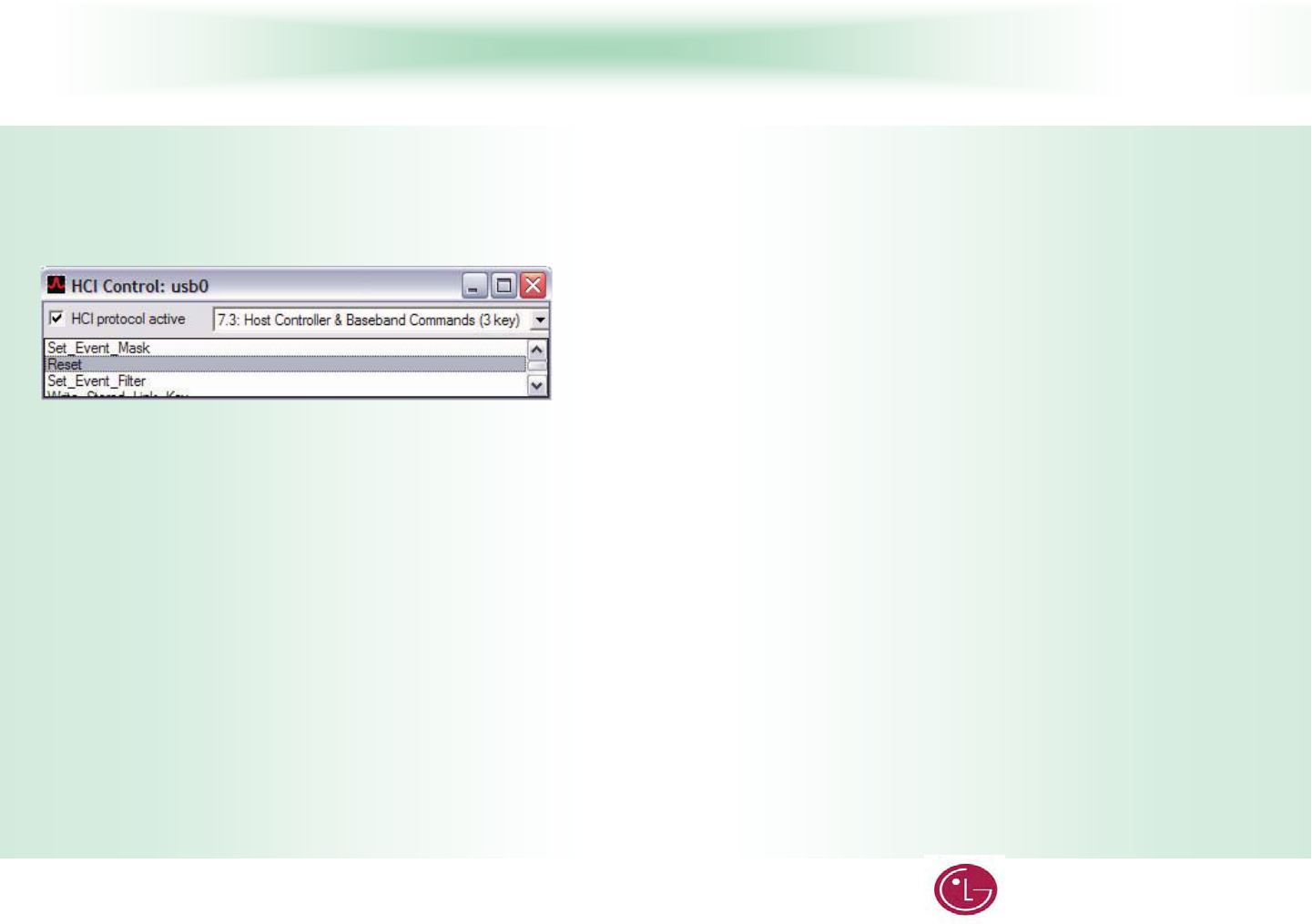 The device under test (DUT) should be reset before each procedure. In the HCI Control… window:G