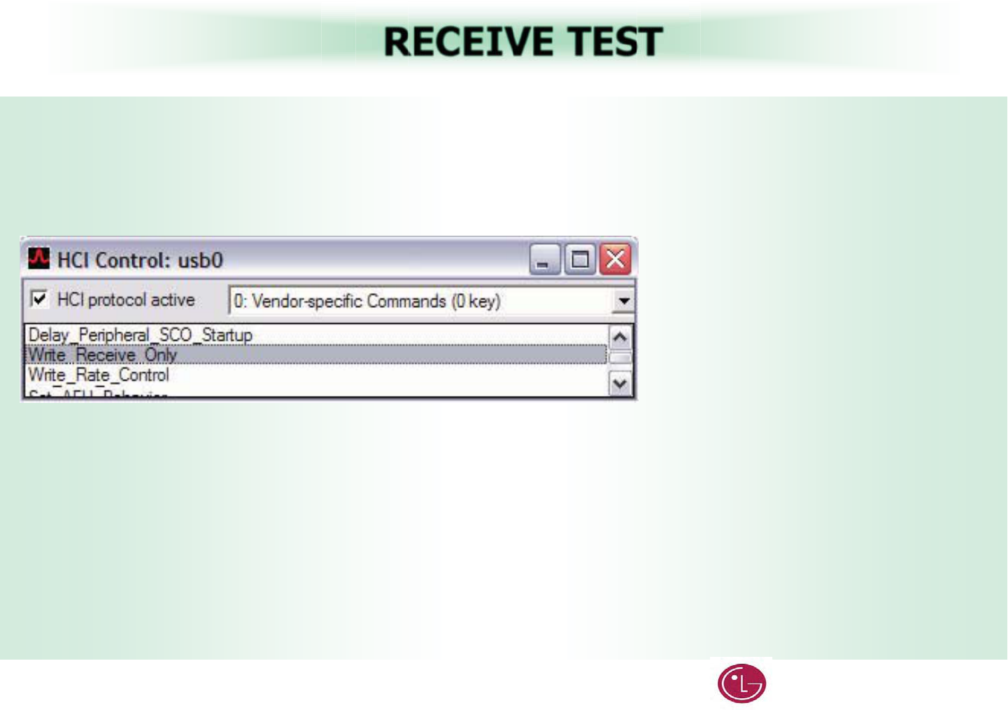 2. In the HCI Control window, from the shortcut menu, select 0: Vendor Specific Command (0 key)G