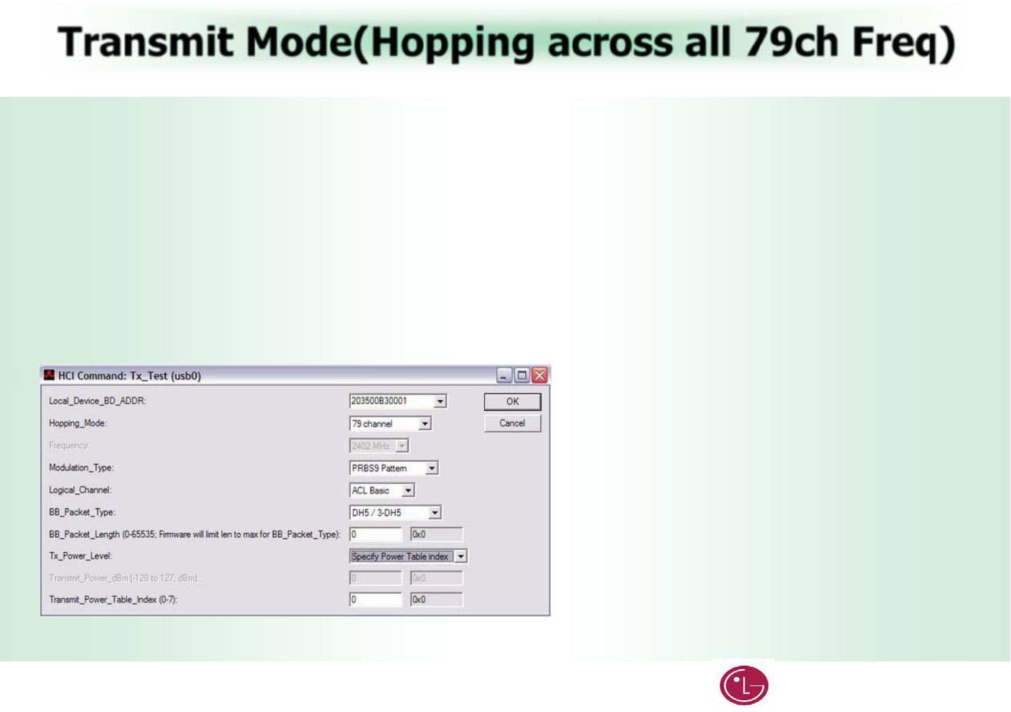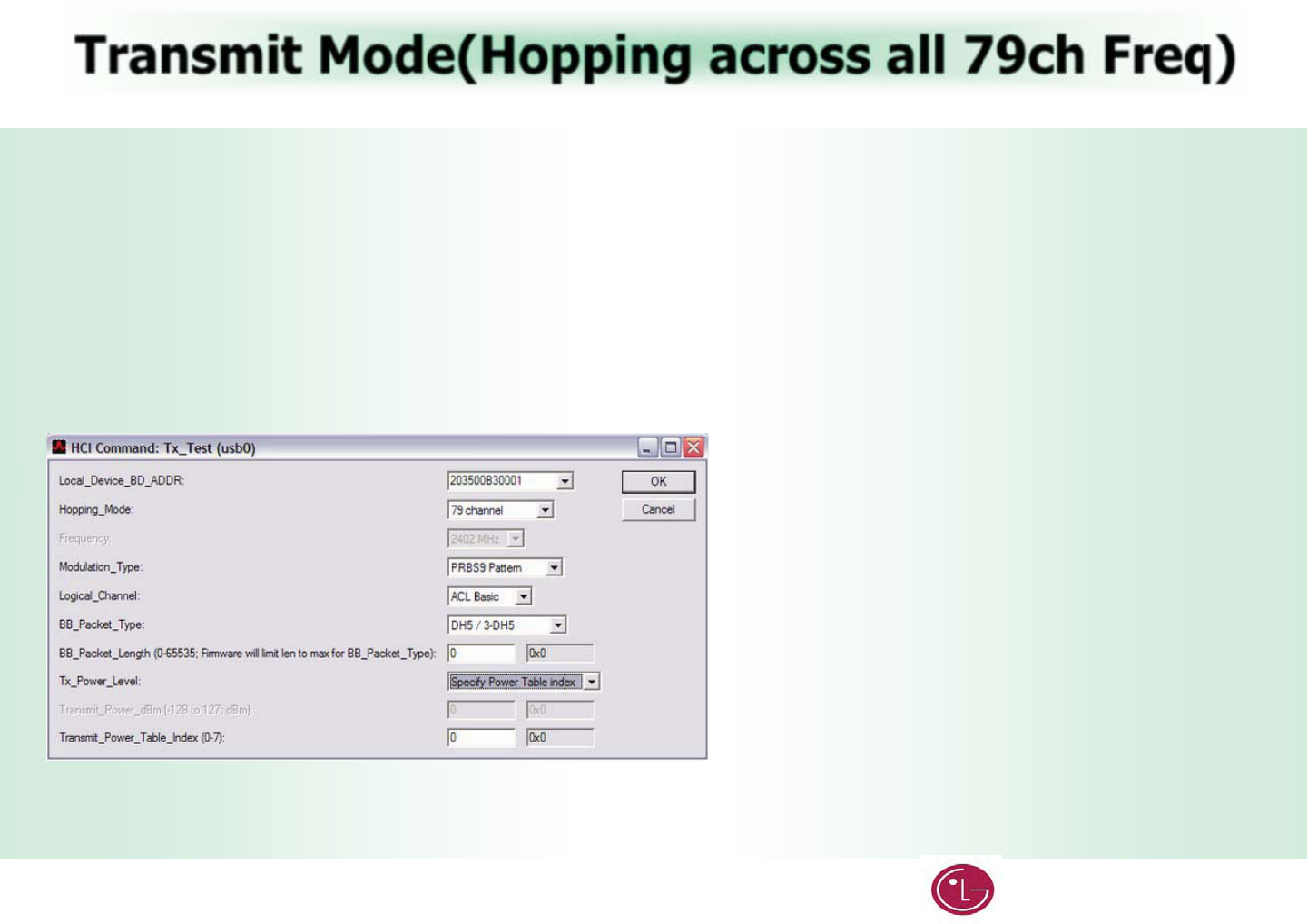 Transmit Mode(Hopping across all 79ch Freq)