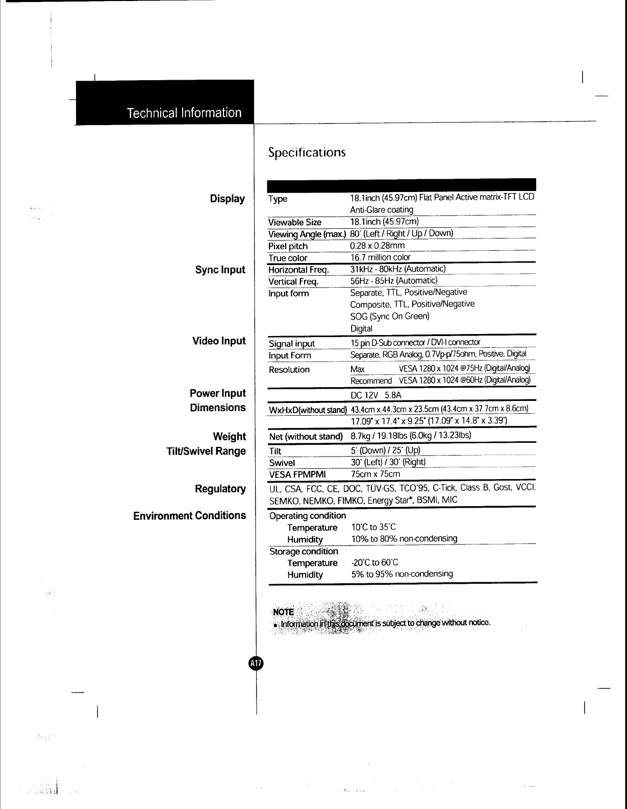 LG Electronics USA LS882C 18-inch LCD Monitor User Manual
