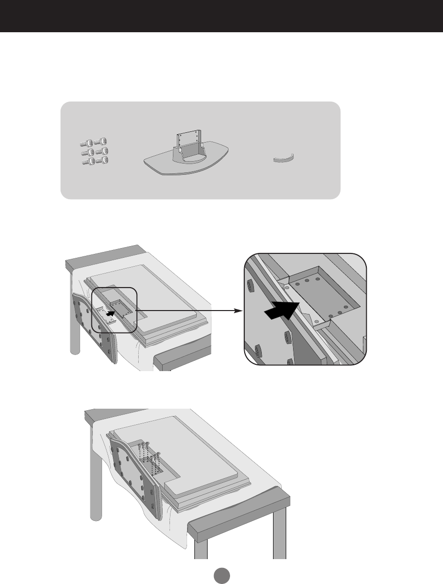 1. Take the parts for the stand out of the box and assemble them as shown in the