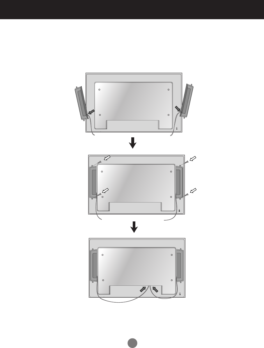 3. Use the screws to secure the stand on the rear side of the product as shown in the