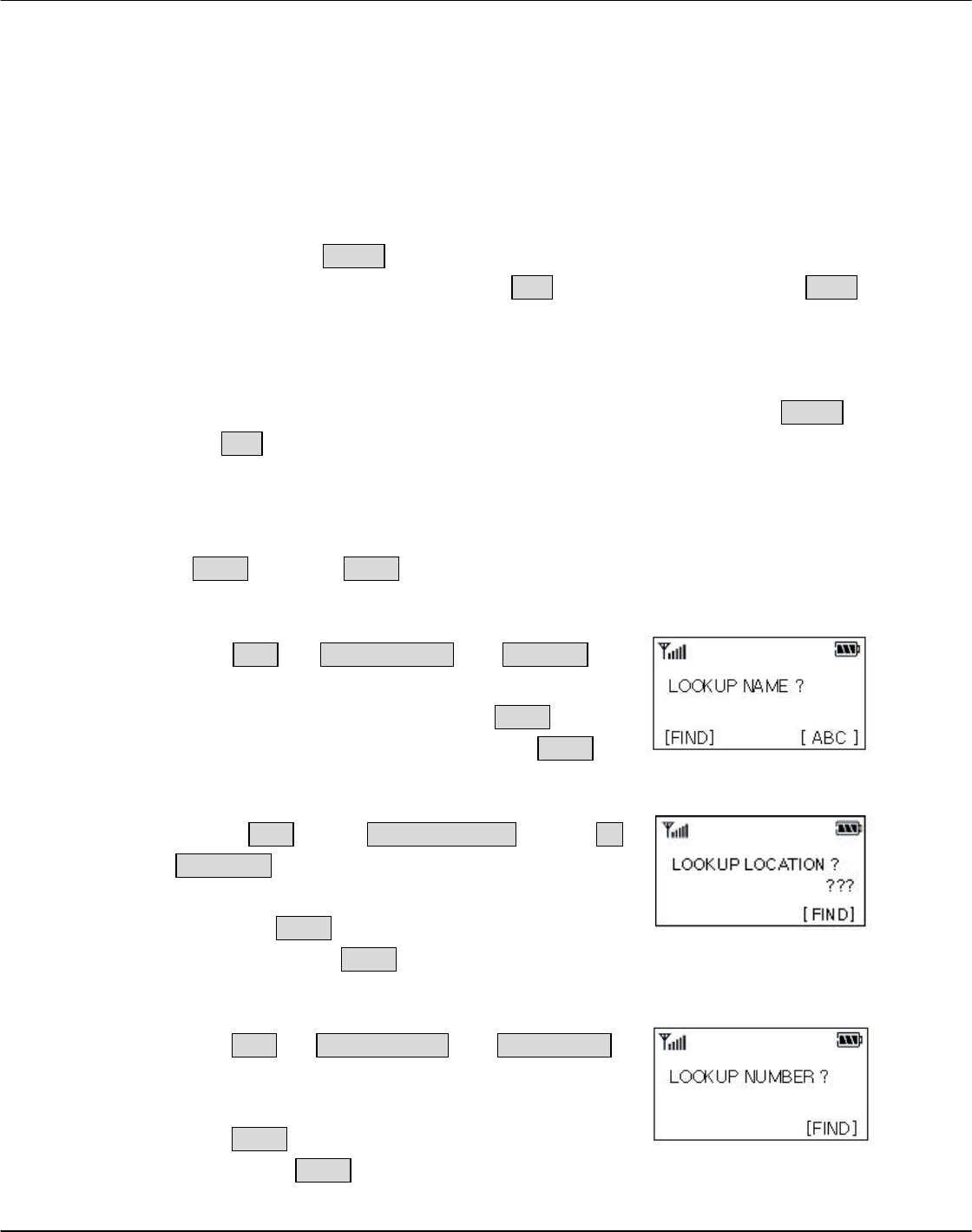 1. Press FIND + 2(PHONE BOOK) + 1(BY NAME), to