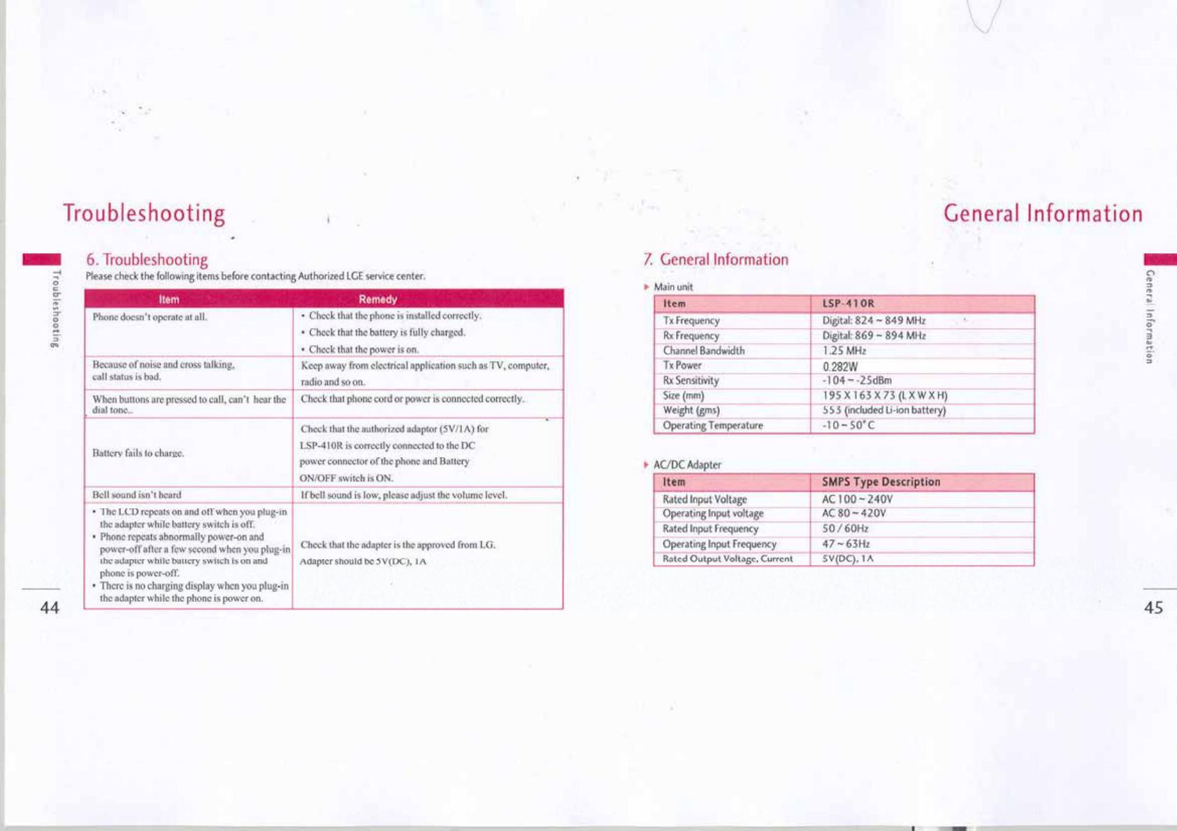 LG Electronics USA LSP410 Single-Band Single-Mode CDMA WLL Phone User Manual LSP 410R 0309