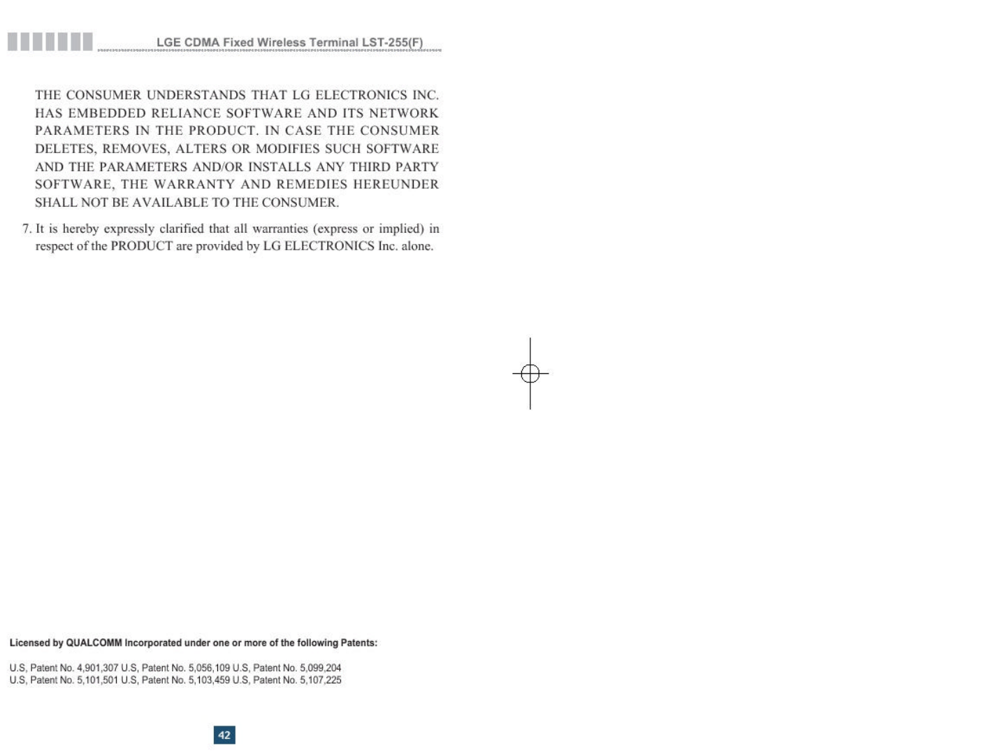 LG ELECTRONICS Inc. represents and warrants that this subscriber unit and