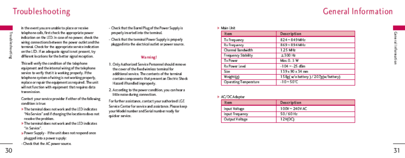 LG Electronics USA LST280 CDMA Fixed Wireless Terminal User Manual LST 280T 1222