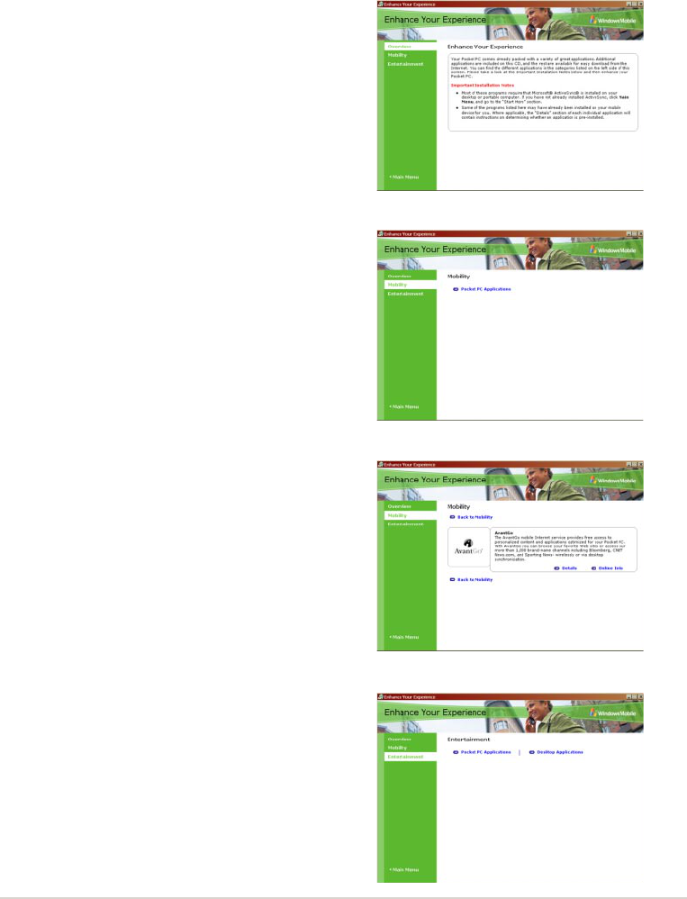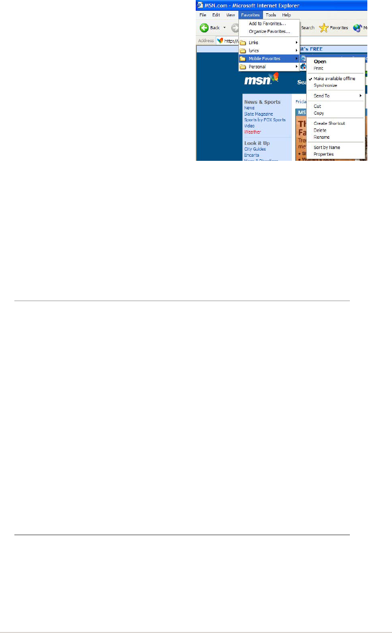 Explorer, Mobile Favorites folder, and AvantGo interactive