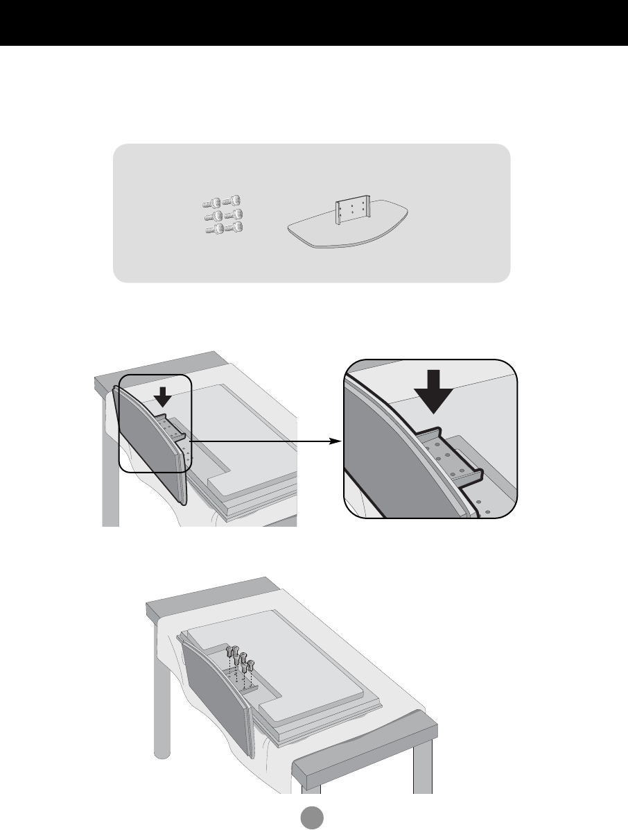3. Use the screws to secure the stand on the rear side of the product as shown