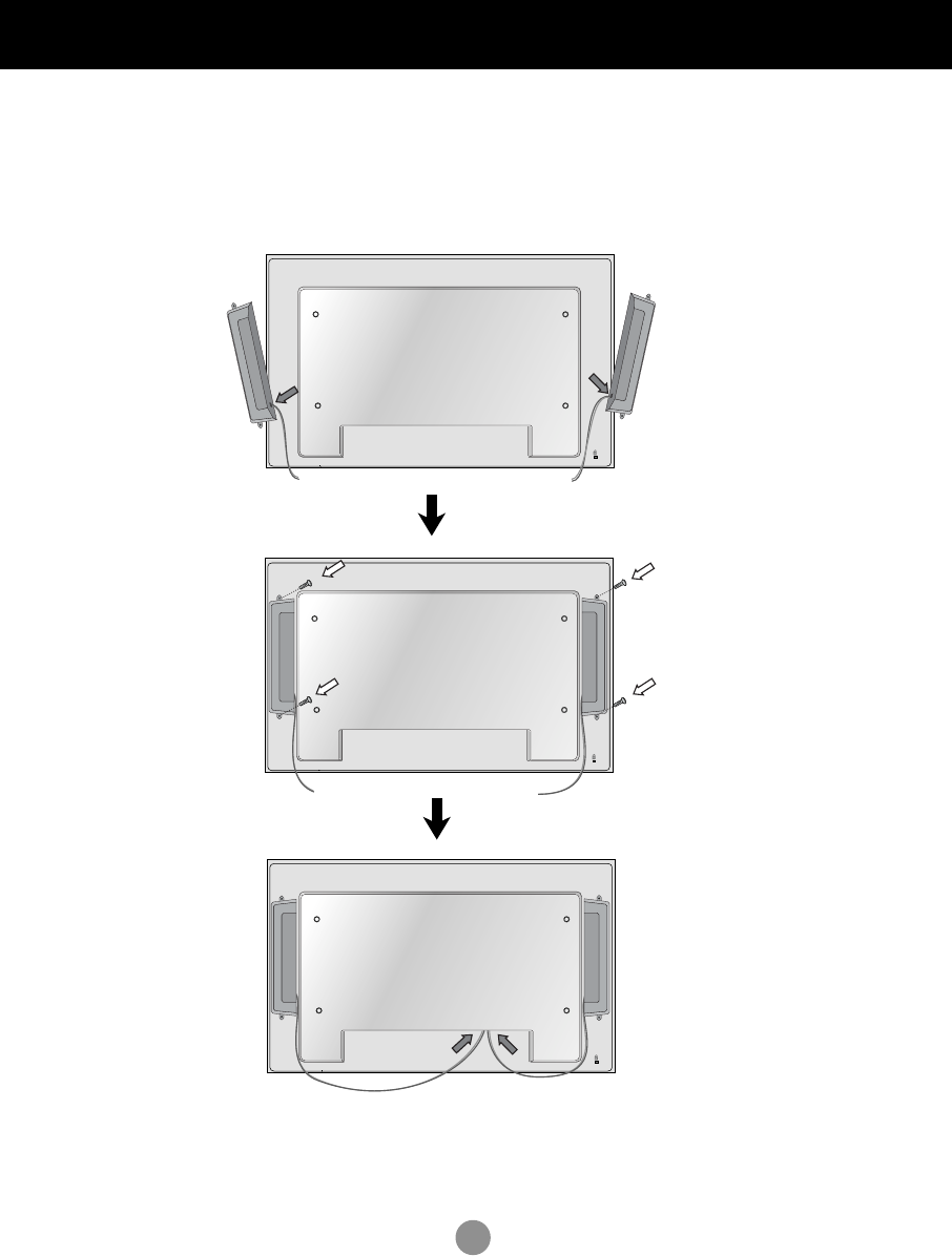 2. After connecting the cables, correctly position the stand cover into the holes on the