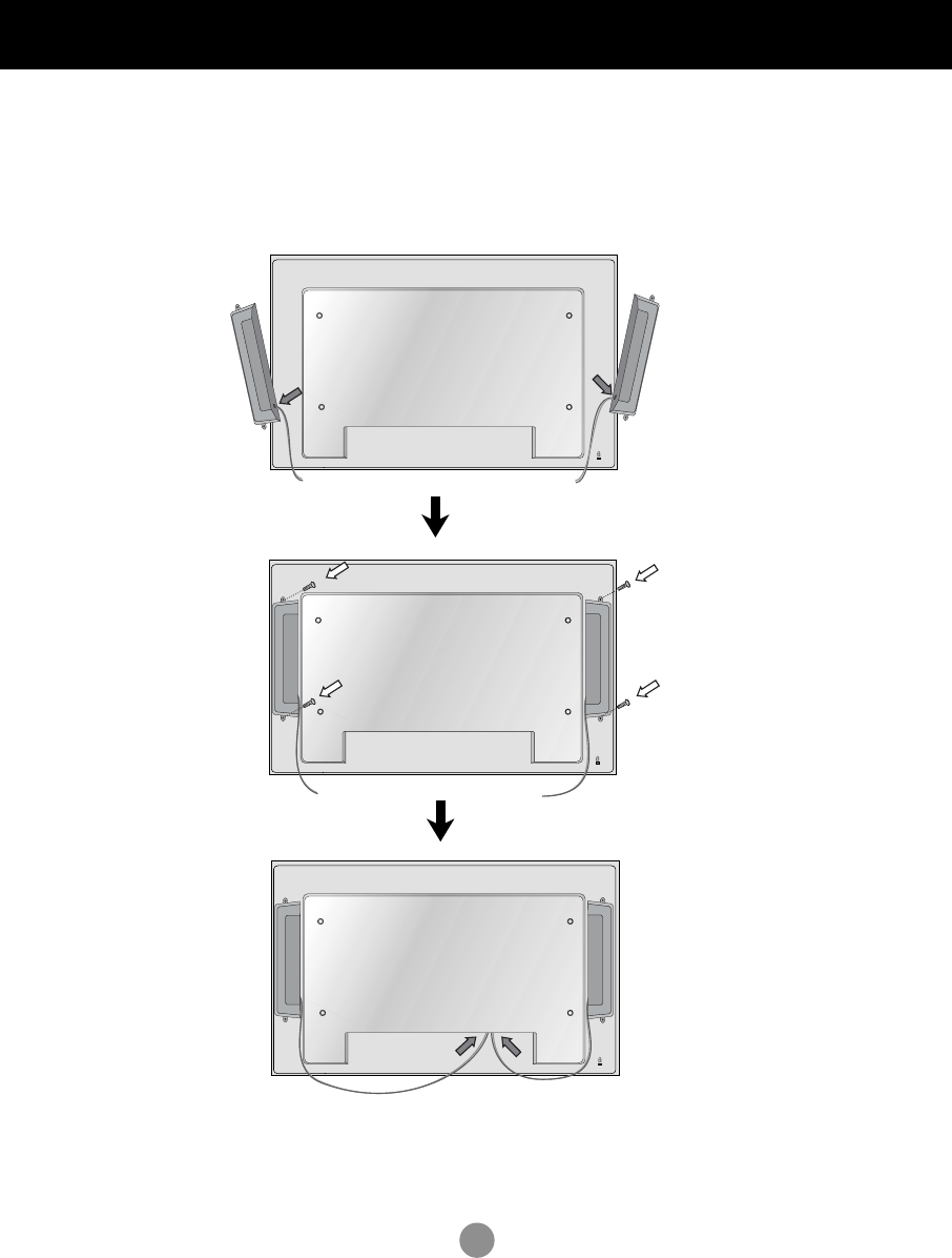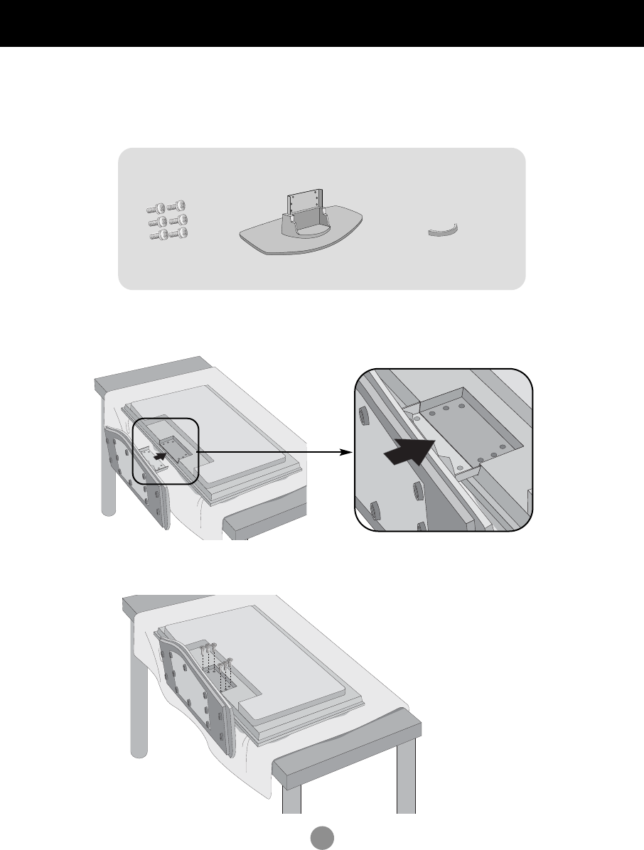 3. Use the screws to secure the stand on the rear side of the product as shown