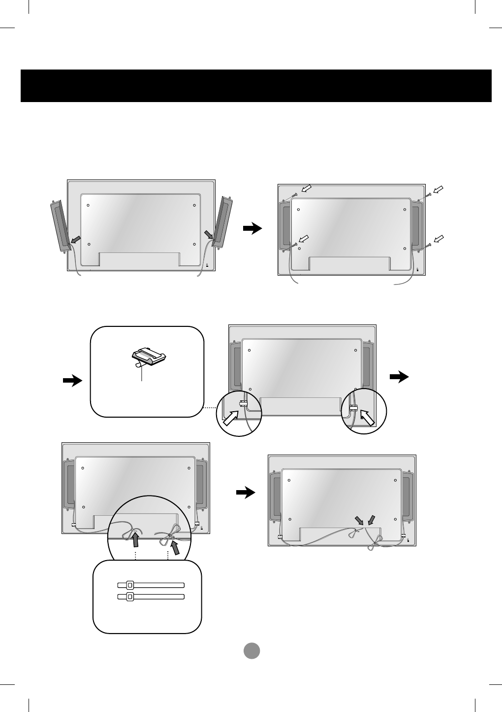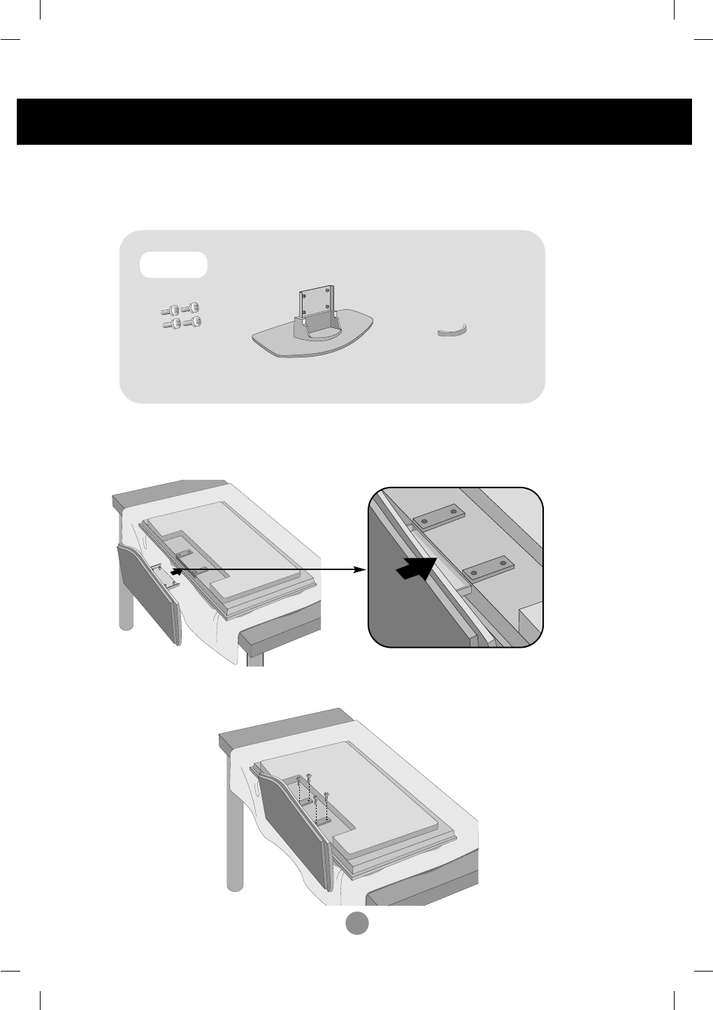 3. Use the screws to secure the stand on the rear side of the product as shown