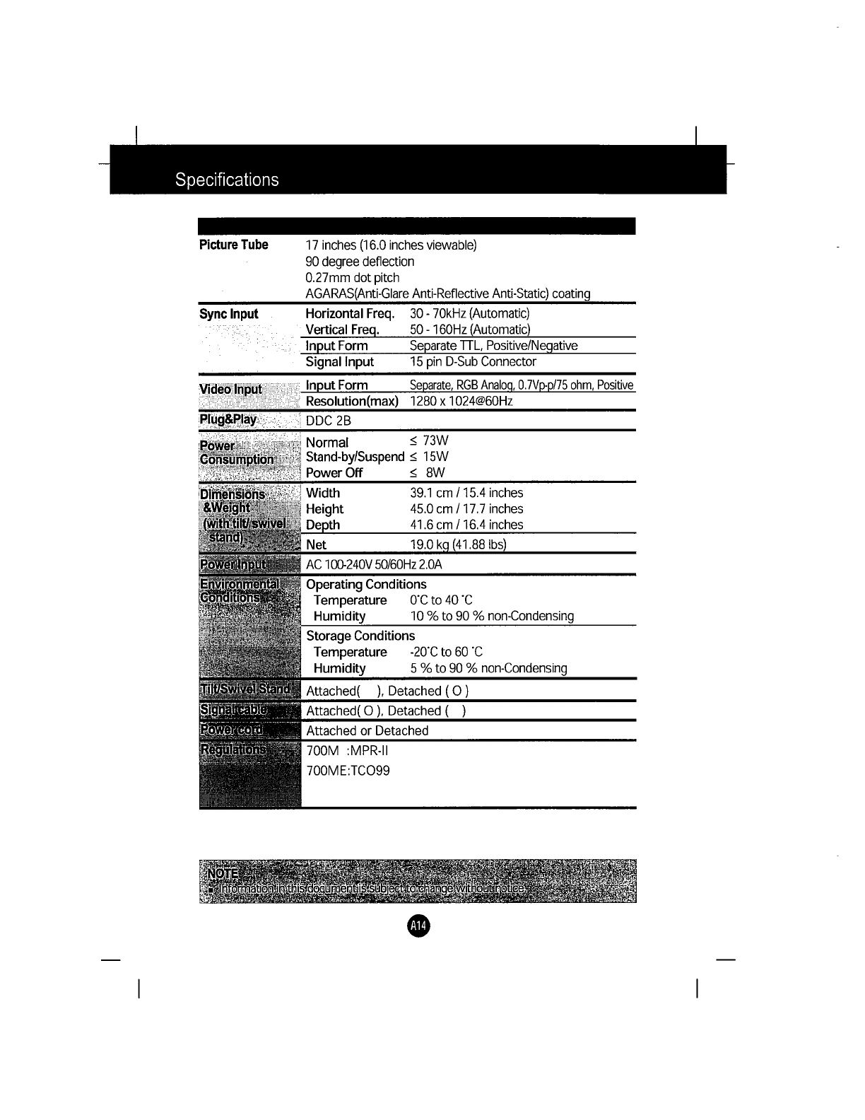 LG Electronics USA MB700G 17-inch CRT Monitor User Manual