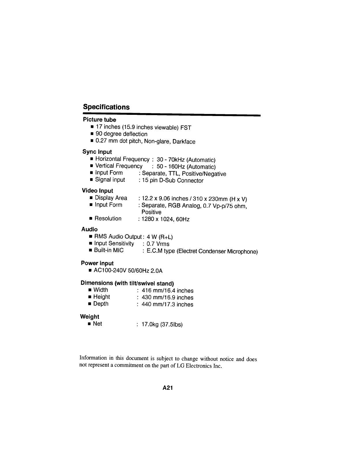 LG Electronics USA 17-INCH MULTIMEDIA COLOR MONITOR Users Manual