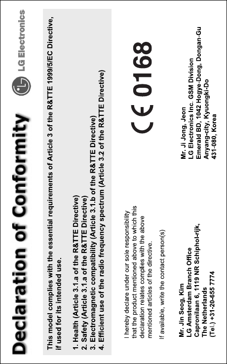 LG Electronics USA MG101 Single-Band PCS GSM Phone User Manual MG101 0223