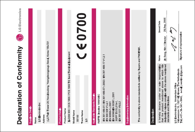 LG Electronics USA MG300 Tri-Band GSM Camera Phone with Bluetooth User Manual MG300d E