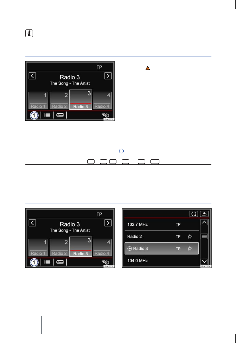 Traffic announcement (INFO) . . . . . . . . . . 17