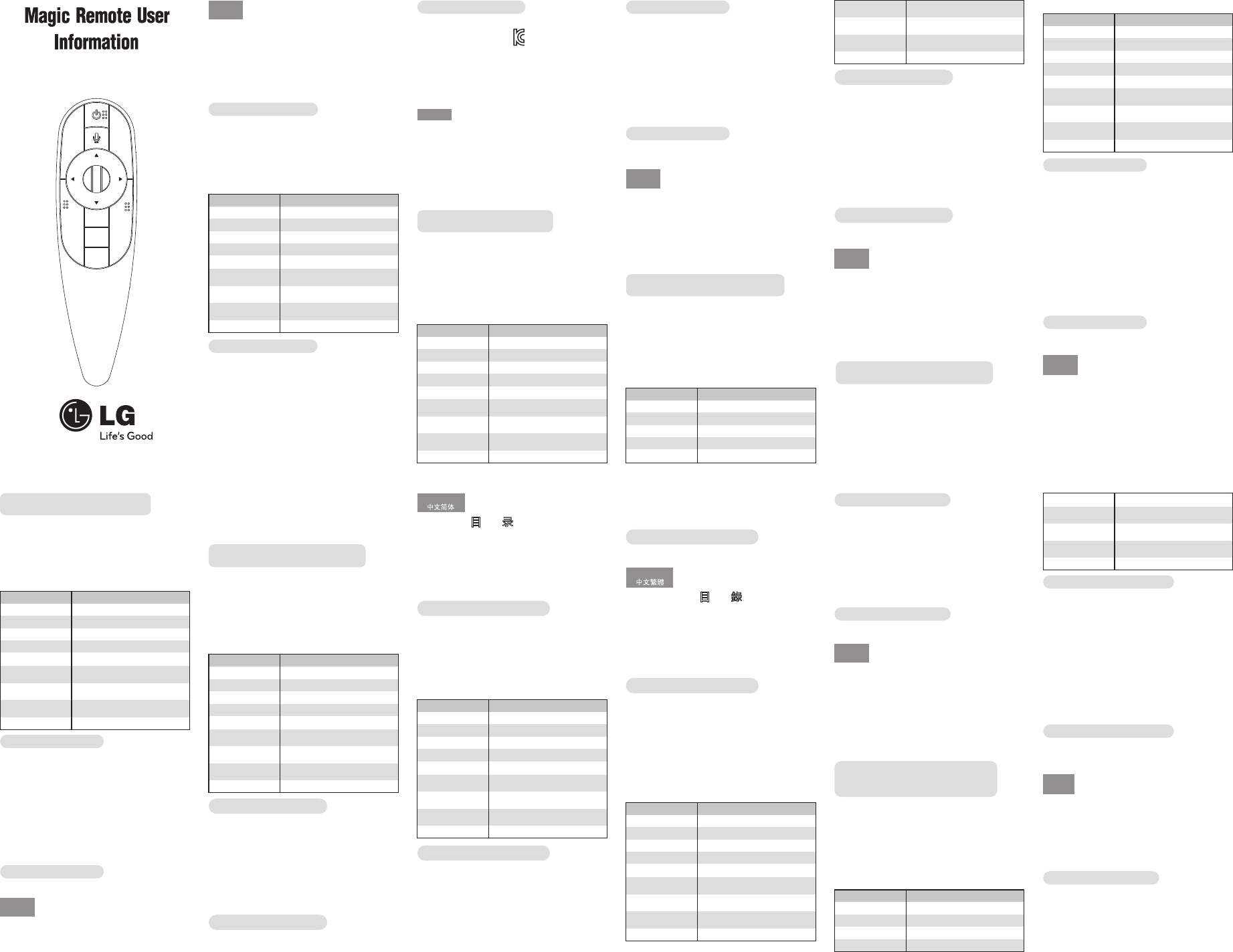 LG Electronics USA RF Remote Control AN MR400P F Rev00 130116