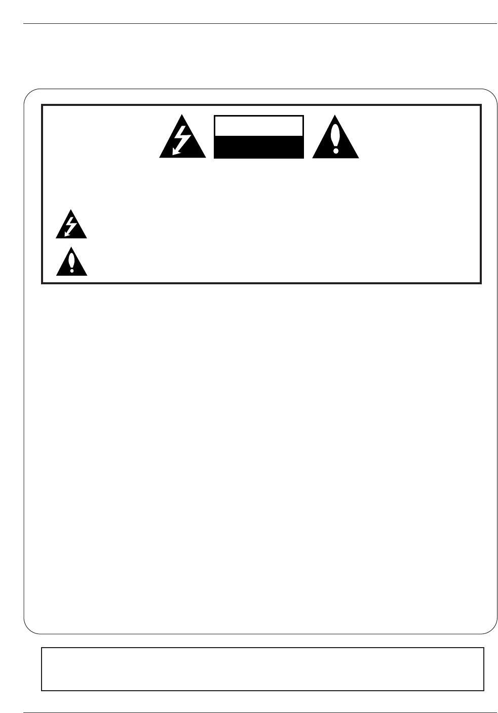 TO REDUCE THE RISK OF ELECTRIC SHOCK DO NOT REMOVE COVER (OR BACK). NO USER