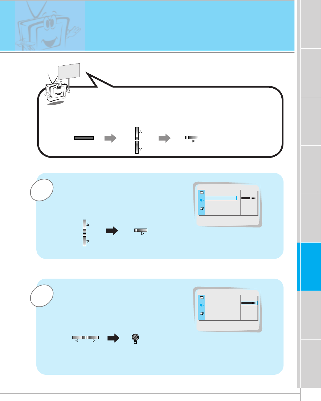 of the speakers • Adjust BALANCE in the SOUND menu. (Refer to p.37)