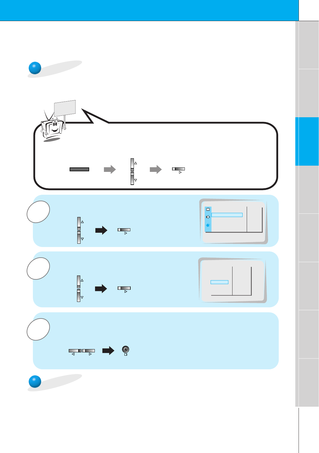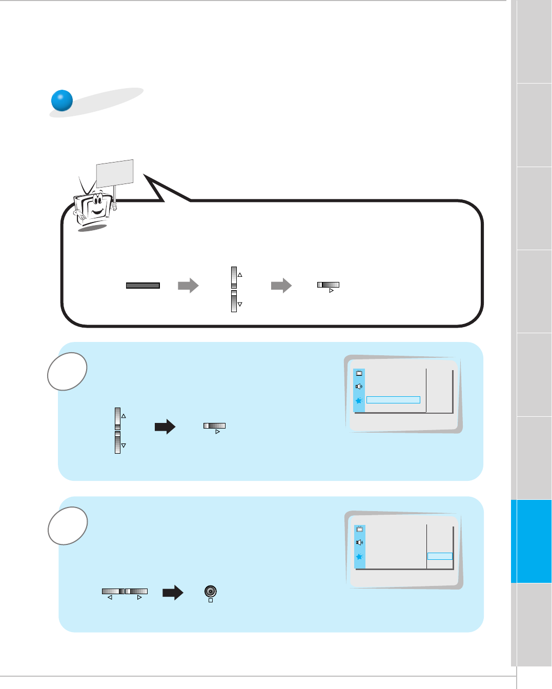INPUT for video connections, depending on your Set Top Box connectors. Then, make the