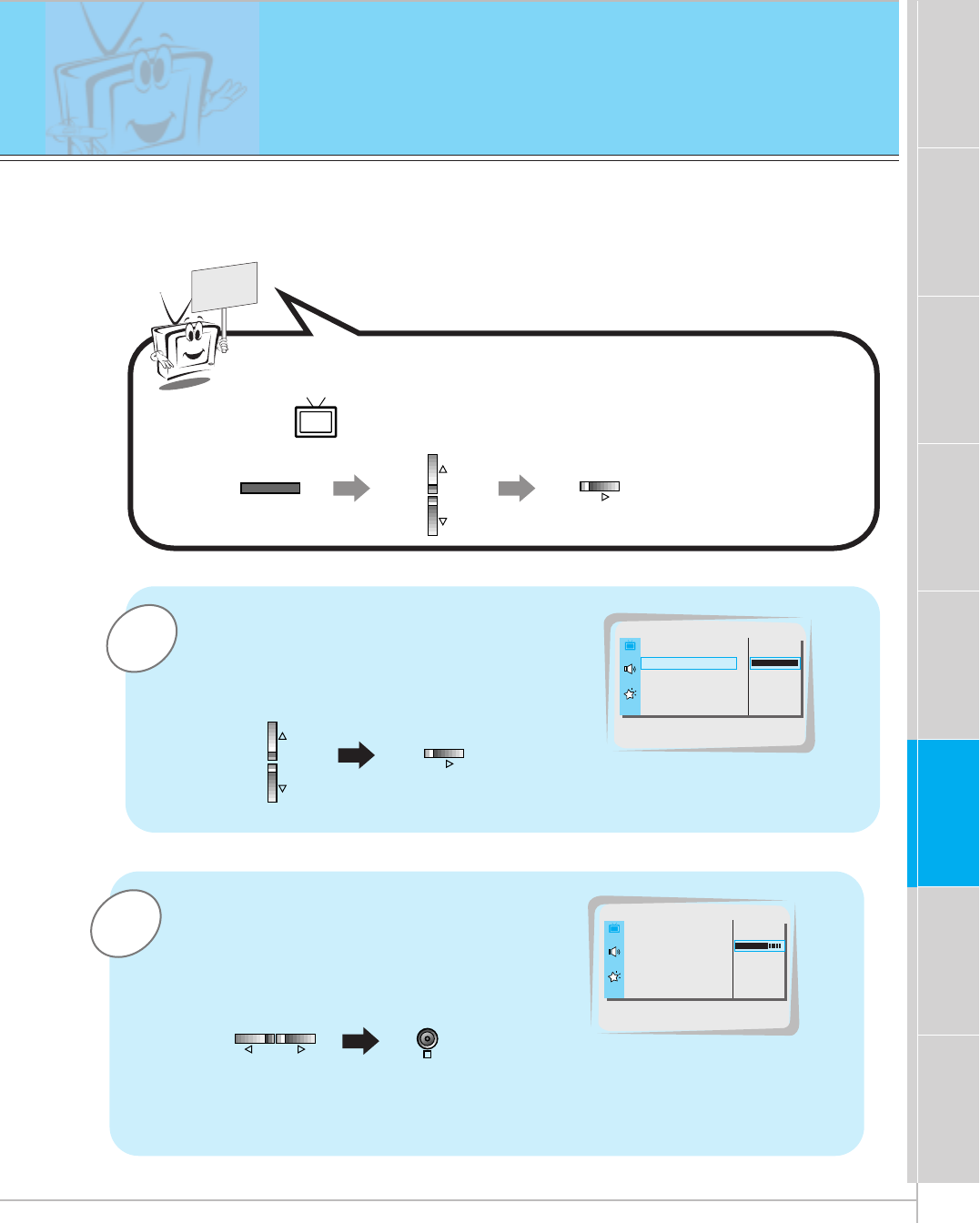 of the speakers • Adjust BALANCE in the SOUND menu. (Refer to p.39)