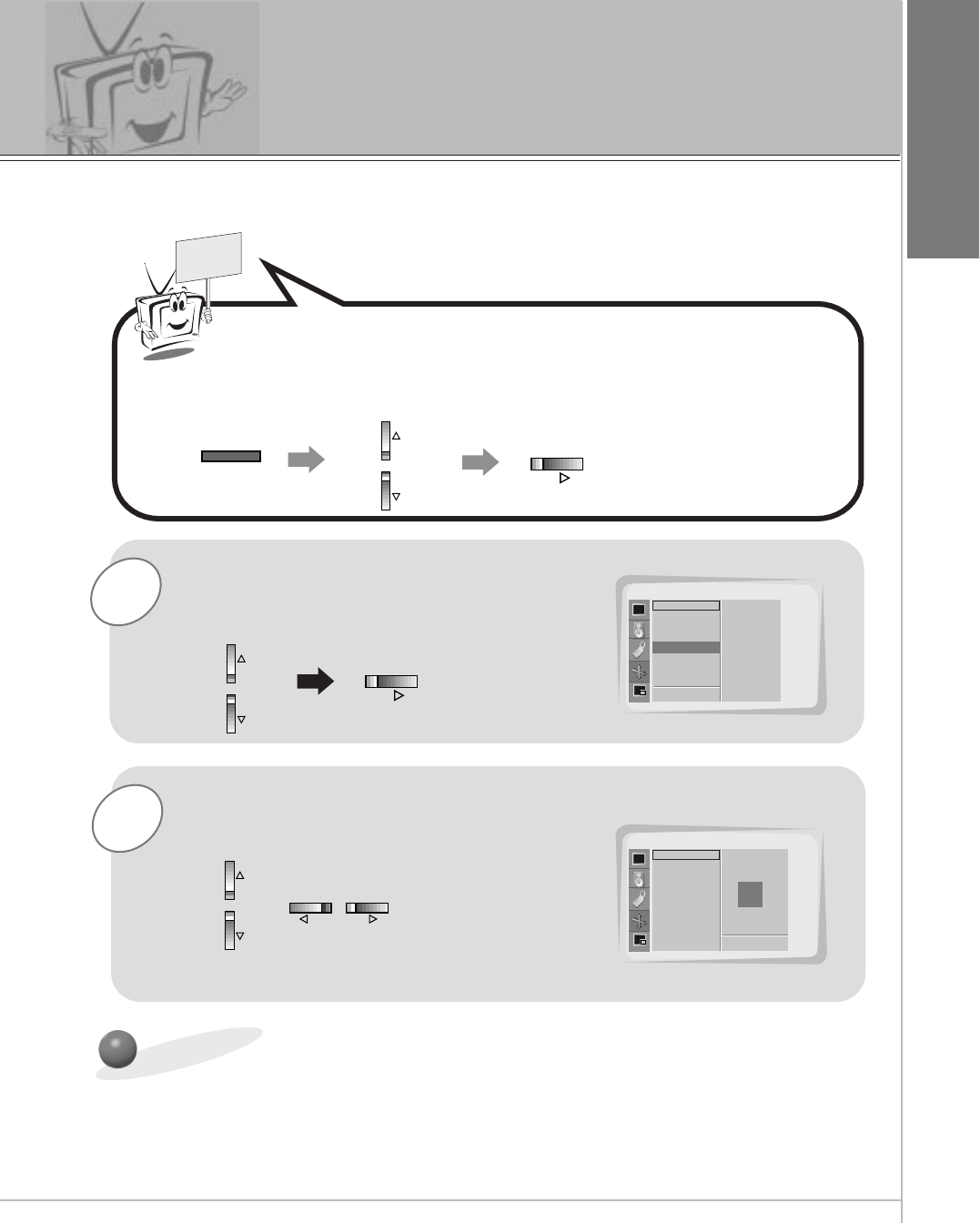 of the speakers • Adjust BALANCE in the SOUND menu. (Refer to 35 page)