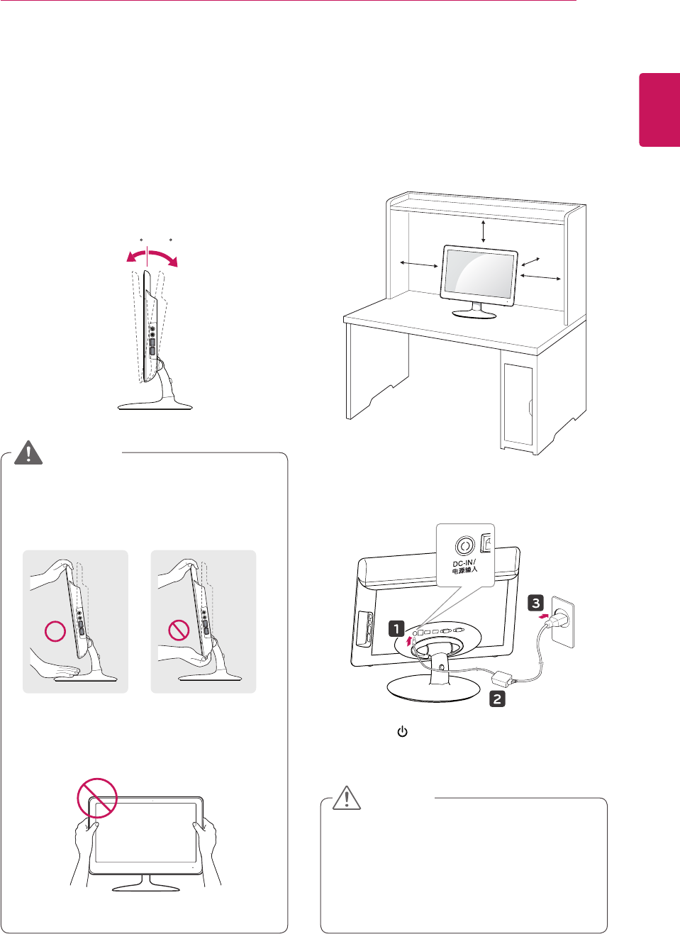 Adjust the angle of the monitor from -5° to 15° to obtain the best view of the screen.