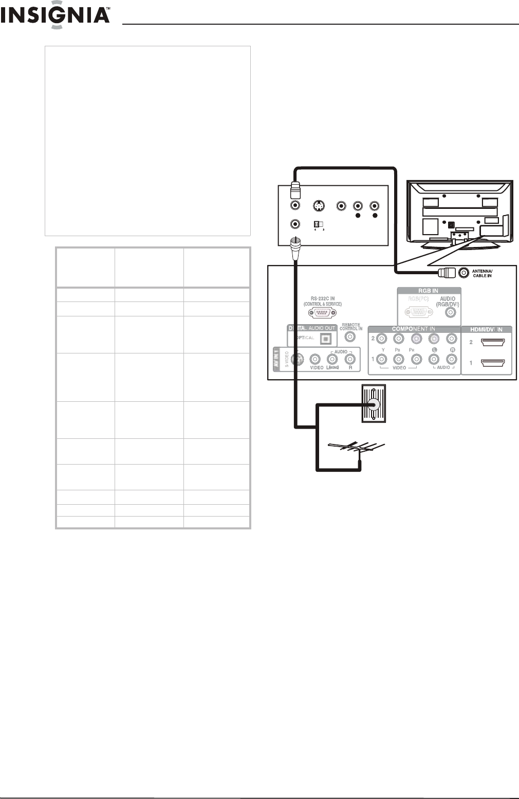 Connecting an antenna, cable TV, or satellite TV. . . 9
