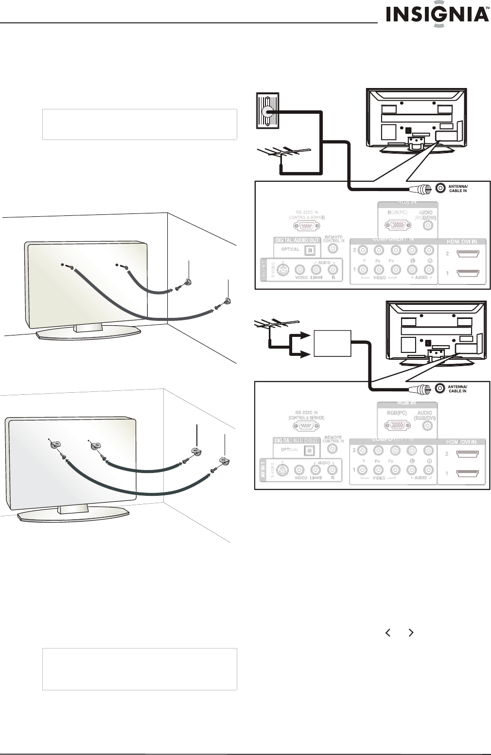 Connecting an antenna, cable TV, or satellite TV. . . 9