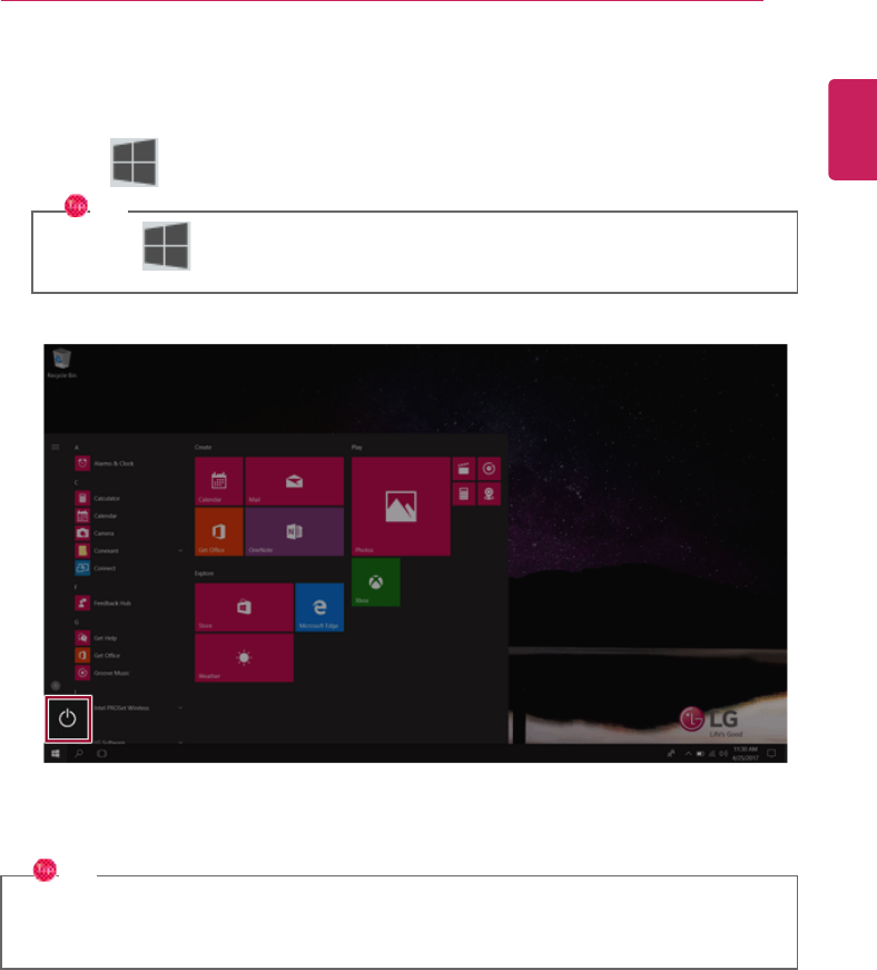 Press the [ ] key or [Ctrl] + [Esc] to display the Start menu.