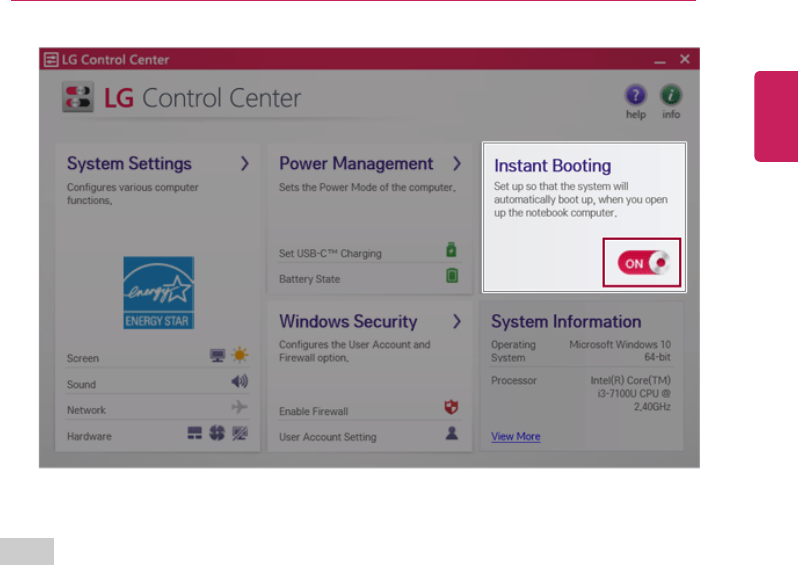 2On LG Control Center screen, set the [Instant Booting] to [ON].