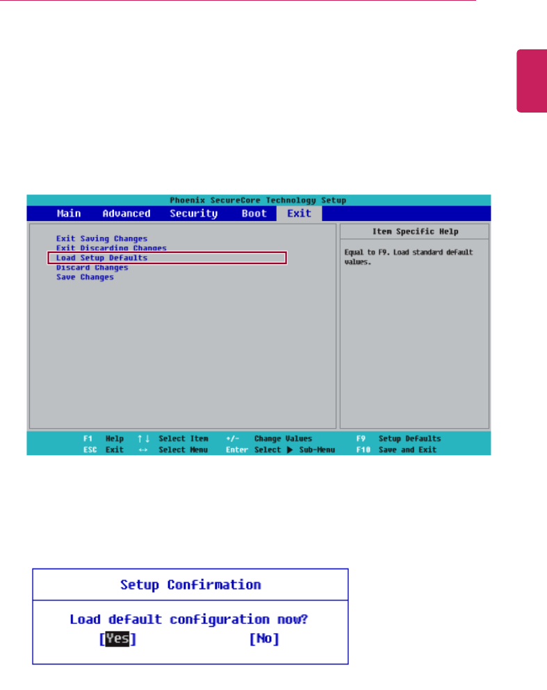 2Click [Load Setup Defaults] by using the arrow keys and pressing [Enter].