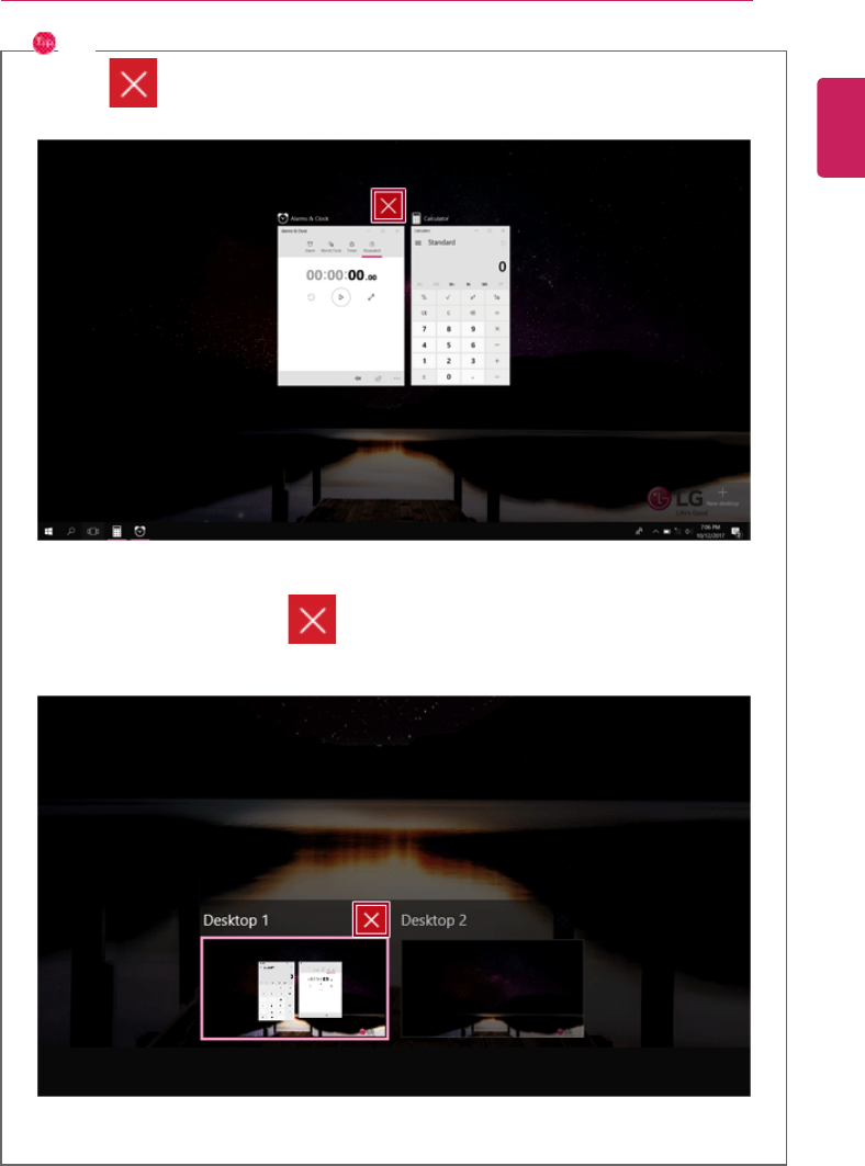 In the desktop preview, press the [ ] button to delete the desktop and move running apps