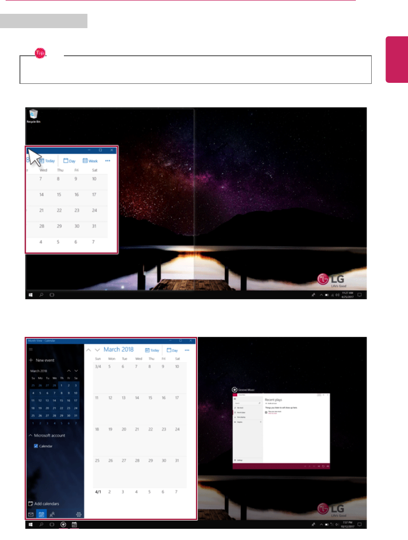 1Drag and drop an app to the right end or left end to reduce the size by half.
