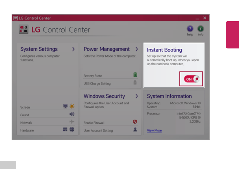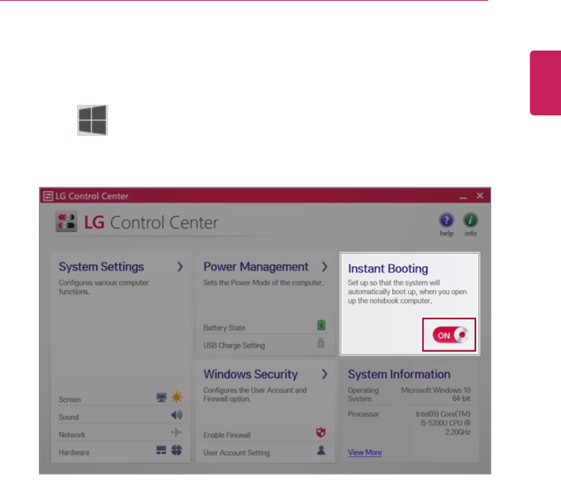 2On LG Control Center screen, set the [Instant Booting] to [ON].
