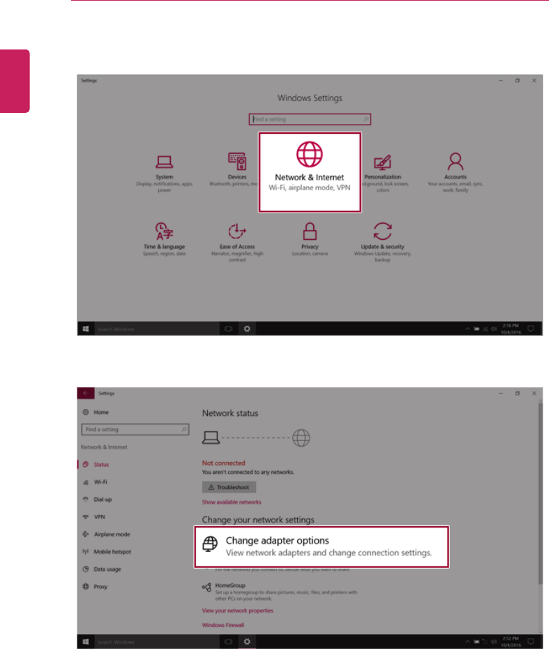 4Select [Network & Internet] >[Status] >[Change adapter options].