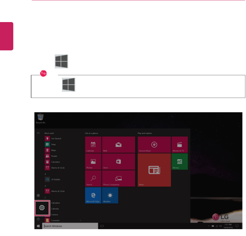 Press the [ ] key or [Ctrl] + [Esc] to display the Start menu.