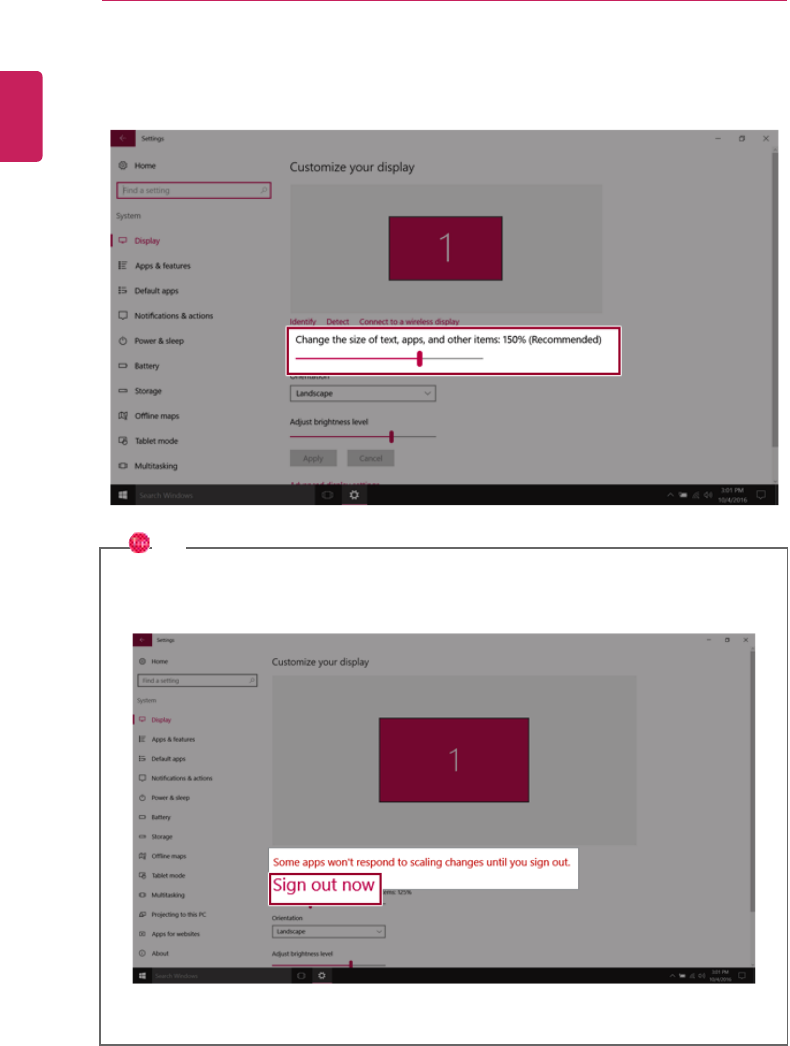 3[Change the size of text, apps and other items.]Changing the item value changes the auto