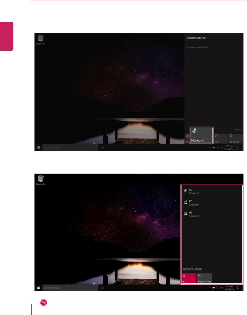 In case no accessible wireless network (Wireless LAN) is near the PC, no Access Point might be