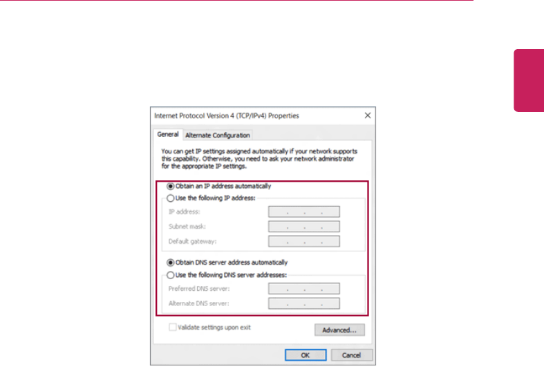 7To use an automatic IP(DHCP), select [Obtain an IP address automatically]. If you wish to use a